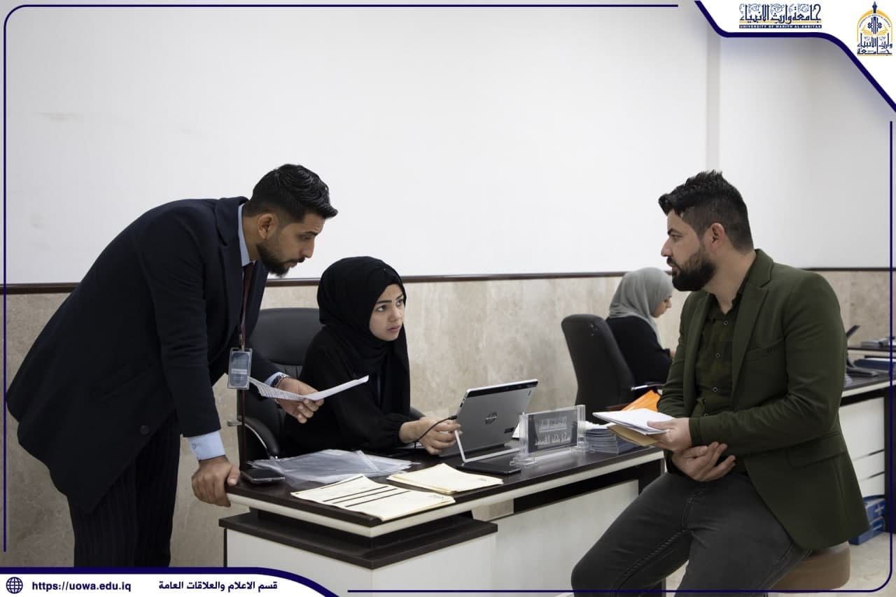 قسم التسجيل في جامعة وارث الانبياء(عليه السلام) مستمر باستقبال الطلبة الاعزاء الراغبين بالتقديم على كليات واقسام الجامعة حيث تضافرت جهود العاملين في القسم والأقسام المسانده له وعلى مدار أيام الاسبوع وأيام العطل(الجمعة والسبت) ومن الساعة ٨صباحاً الى ٥مساءً