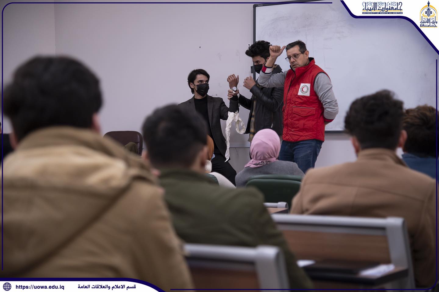 برعاية السيد عميد كلية الهندسة الأستاذ المساعد الدكتور حاكم الجبوري أقامت كلية الهندسة وبالتعاون مع جمعية الهلال الأحمر العراقي فرع كربلاء المقدسة ورشة عمل تدريبية لطلبة كلية الهندسة في الإسعافات الأولية، وتضمنت الورشة تدريب المشاركين على كيفية اسعاف المرضى والجرحى في الحالات الطارئة والحوادث وماهي الحالات البديلة قبل نقل المريض الى المشفى في الدقائق الأولى من الإصابة والتي شملت كافة الخطوات الواجب القيام بها للتعامل مع هذه الحالات بالشكل المبسط وبتطبيق عملي لتسهيل التعلم والتصرف بحكمة لتفادي هذه المشاكل مثل حالات (الاختناق, الغرق, الحريق ) والحالات الاضطرارية كحالات فقدان الوعي ،حيث انه من الضروري تدريب الجميع على الإسعافات الأولية لأنها تعد الطريقة المثلى لإنقاذ حياة المواطنين في الدقائق الأولى لوقوع الحادث والتي تعد الدقائق الذهبية لإنقاذ حياة المصاب.