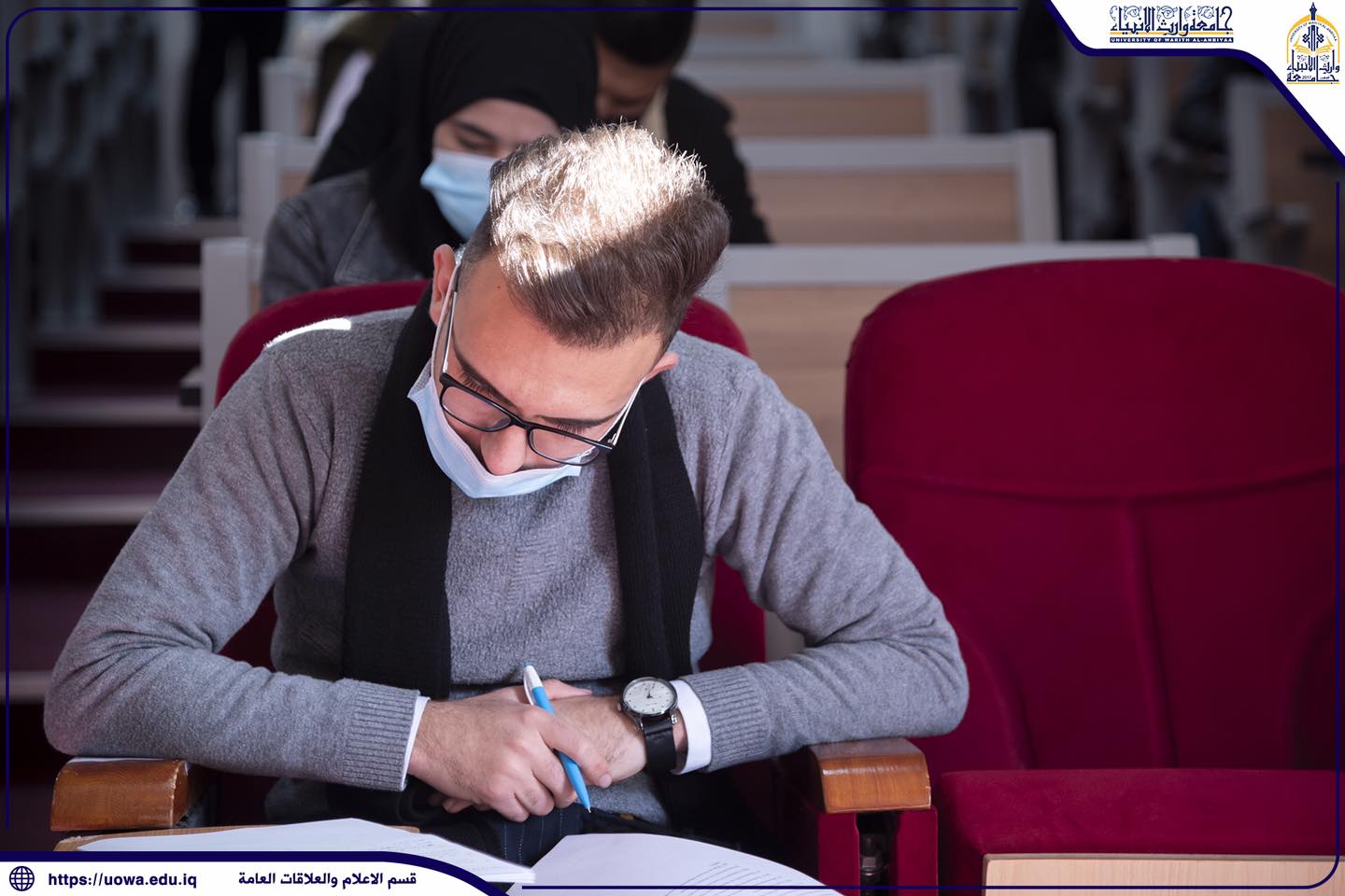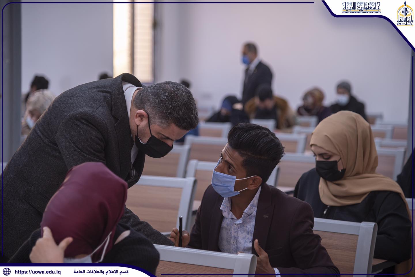 استمرار الامتحانات الحضورية لطلبة كليات واقسام جامعة وارث الانبياء(عليه السلام)، حيث تفقد السيد المساعد الاداري الاستاذ الدكتور نوفل الاعرجي، والسيد المساعد العلمي الاستاذ الدكتور عباس الدعمي خلال جولتهما سير الامتحانات الحضورية مع التأكيد على الالتزام بالاجراءات الوقائية والصحية.