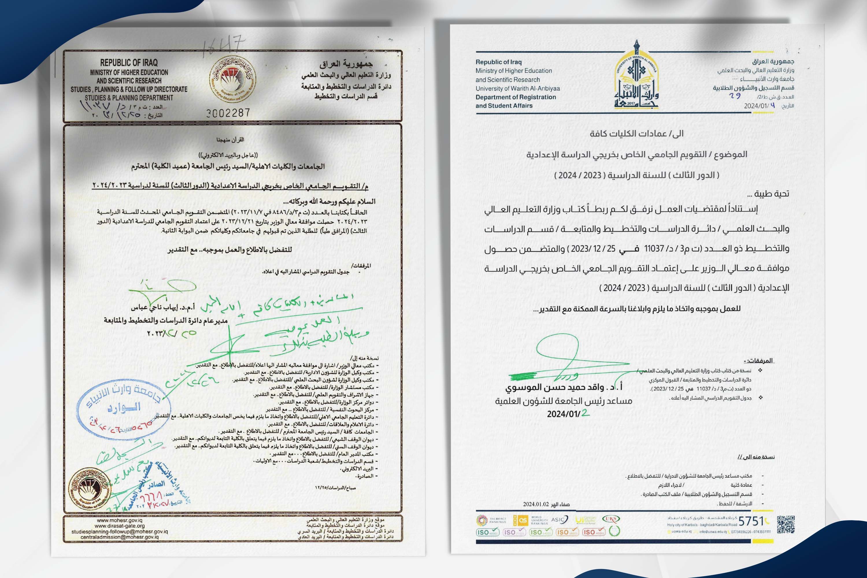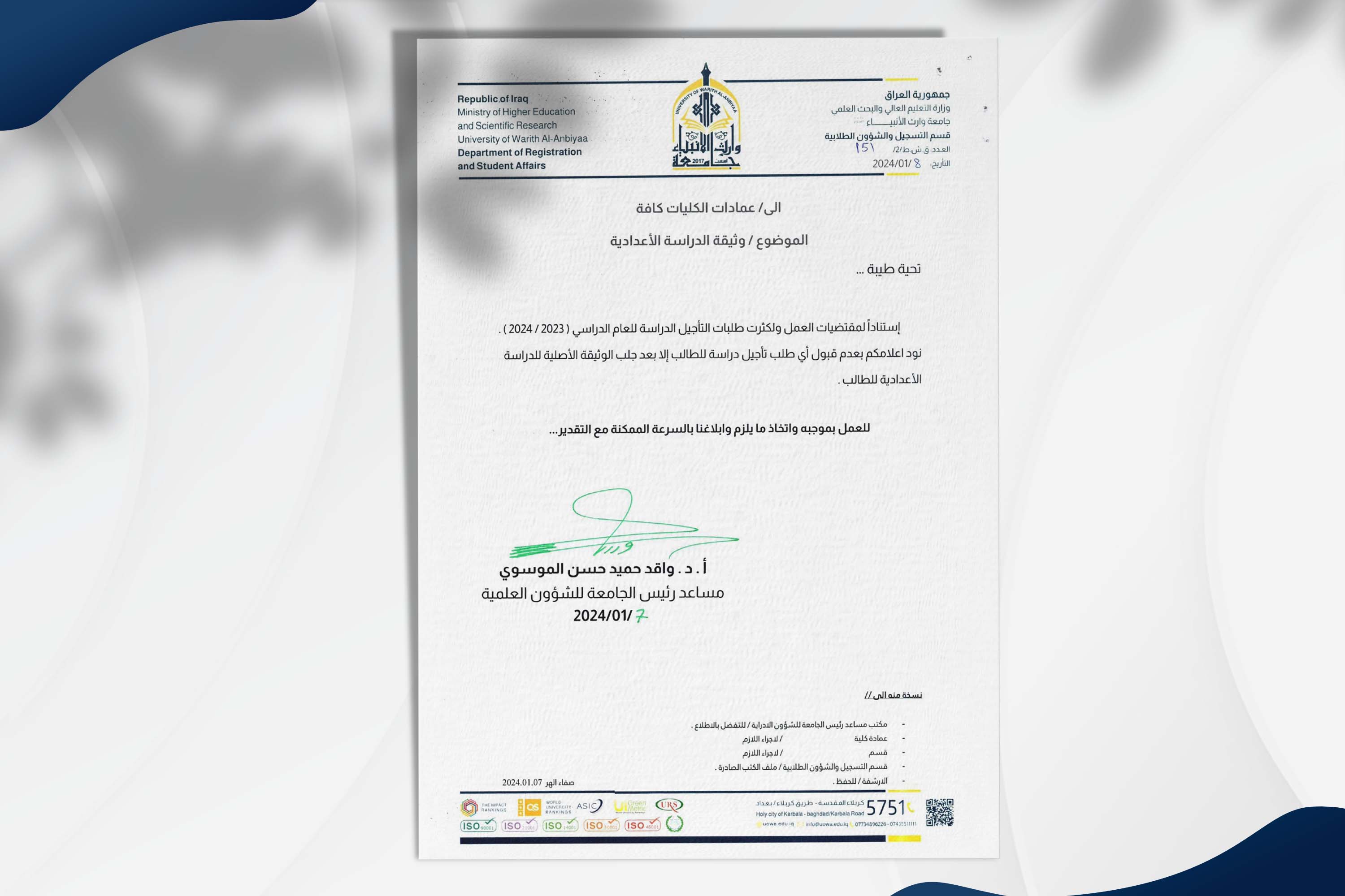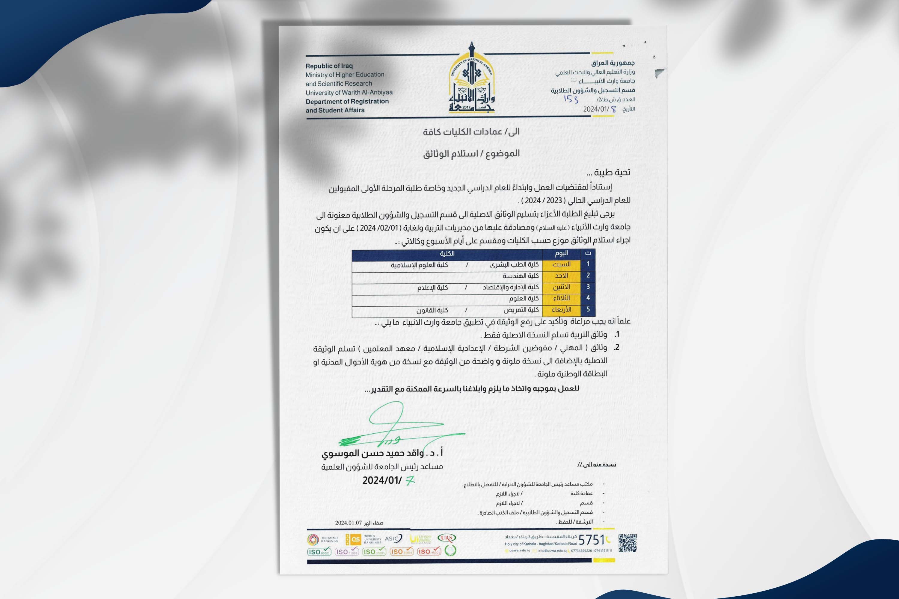 1 - جلب المستمسكات الثبوتية الثلاثة (هويه الأب، هوية الأم، هوية الطالبـ/ة، بطاقة السكن، البطاقة التموينية) ثلاث (3) نسخ لكل واحدة.