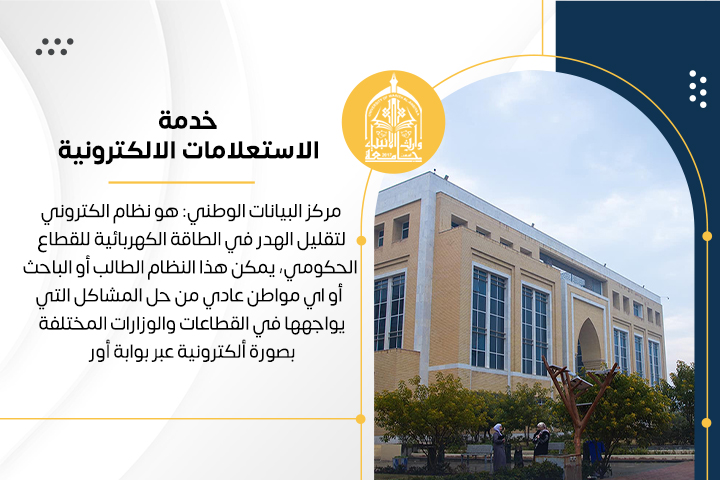 مركز البيانات الوطني: هو نظام الكتروني لتقليل الهدر في الطاقة الكهربائية للقطاع الحكومي، يمكن هذا النظام الطالب أو الباحث أو اي مواطن عادي من حل المشاكل التي يواجهها في القطاعات والوزارات المختلفة بصورة ألكترونية عبر بوابة أور، ويمكن الدخول الى البوابة بالنقر على الرابط أدناه: