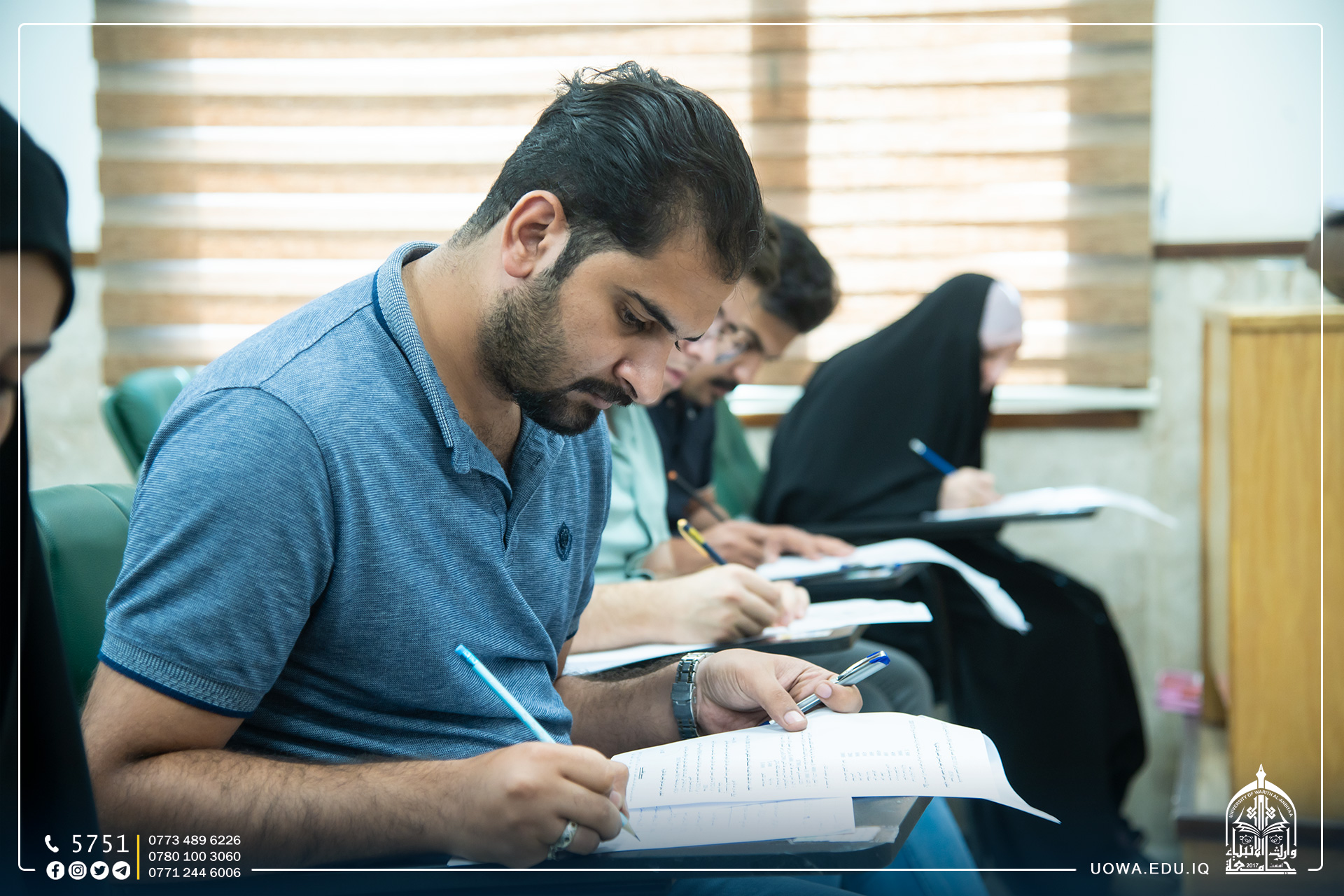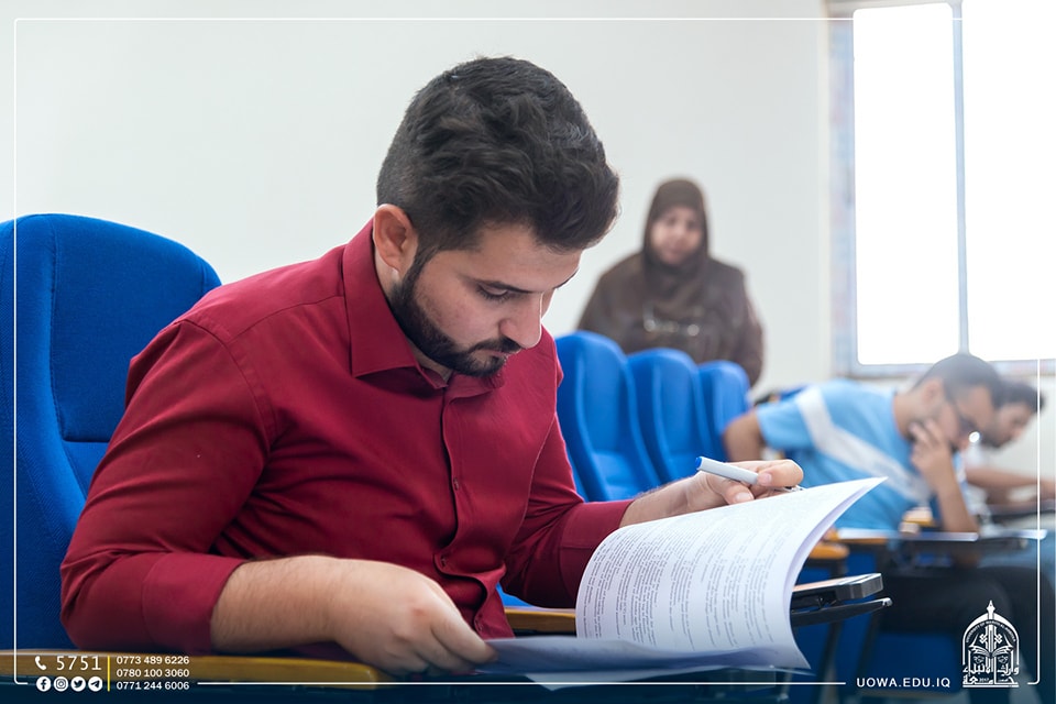 جانب مصور من أداء طلبة جامعة وارث الانبياء (عليه السلام) للامتحانات النهائية