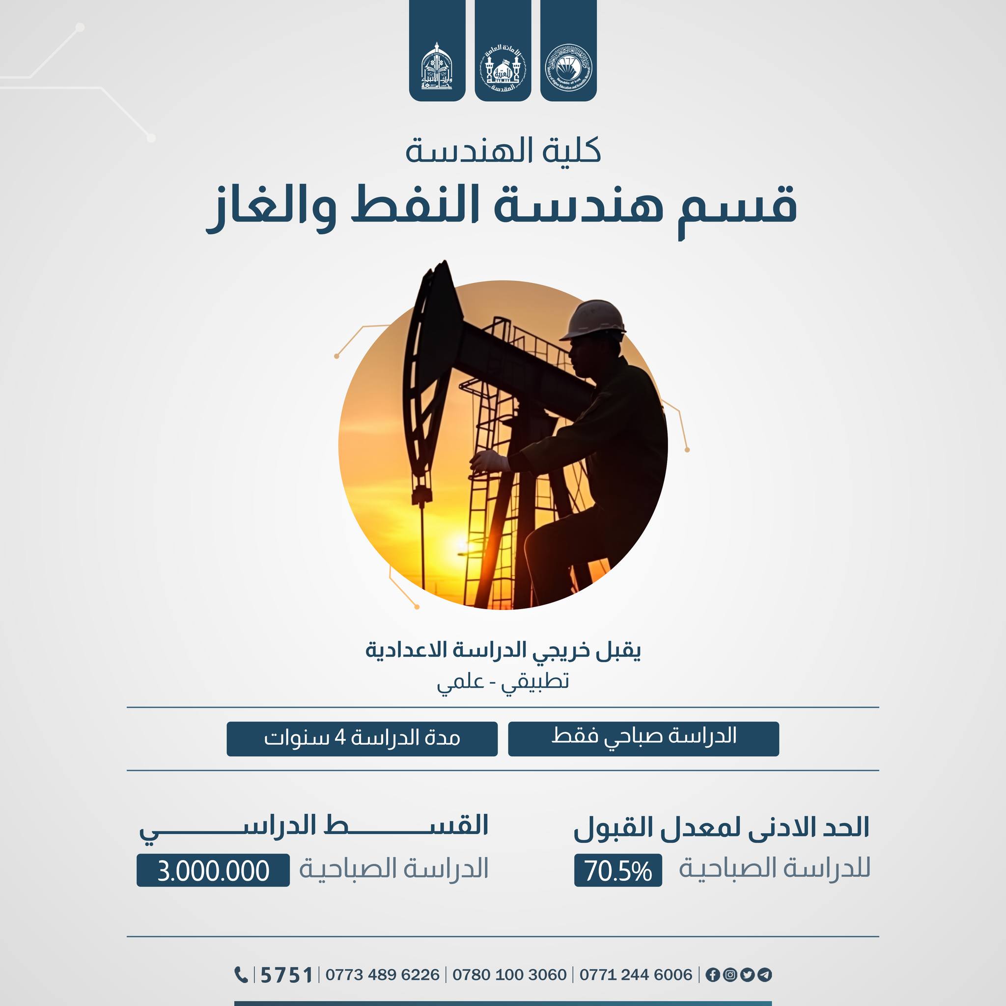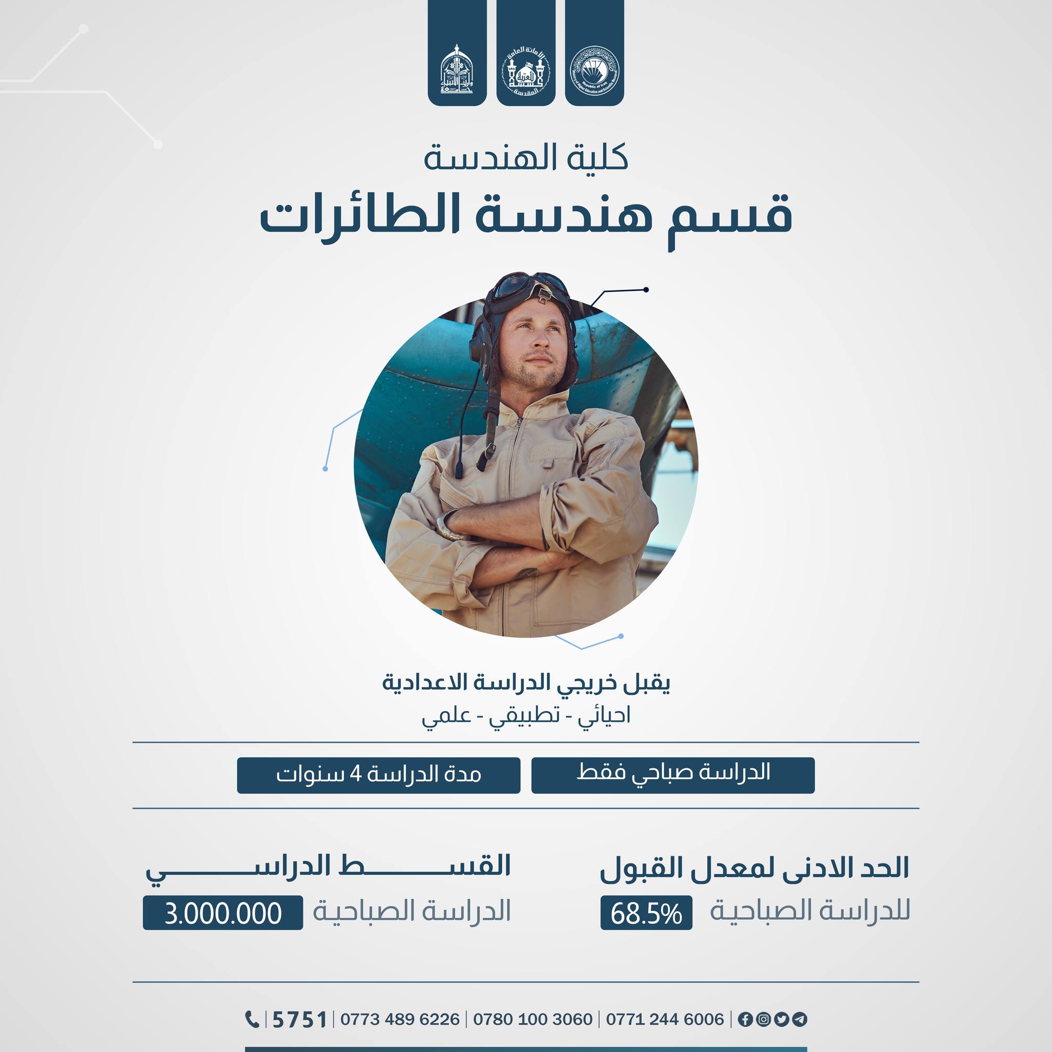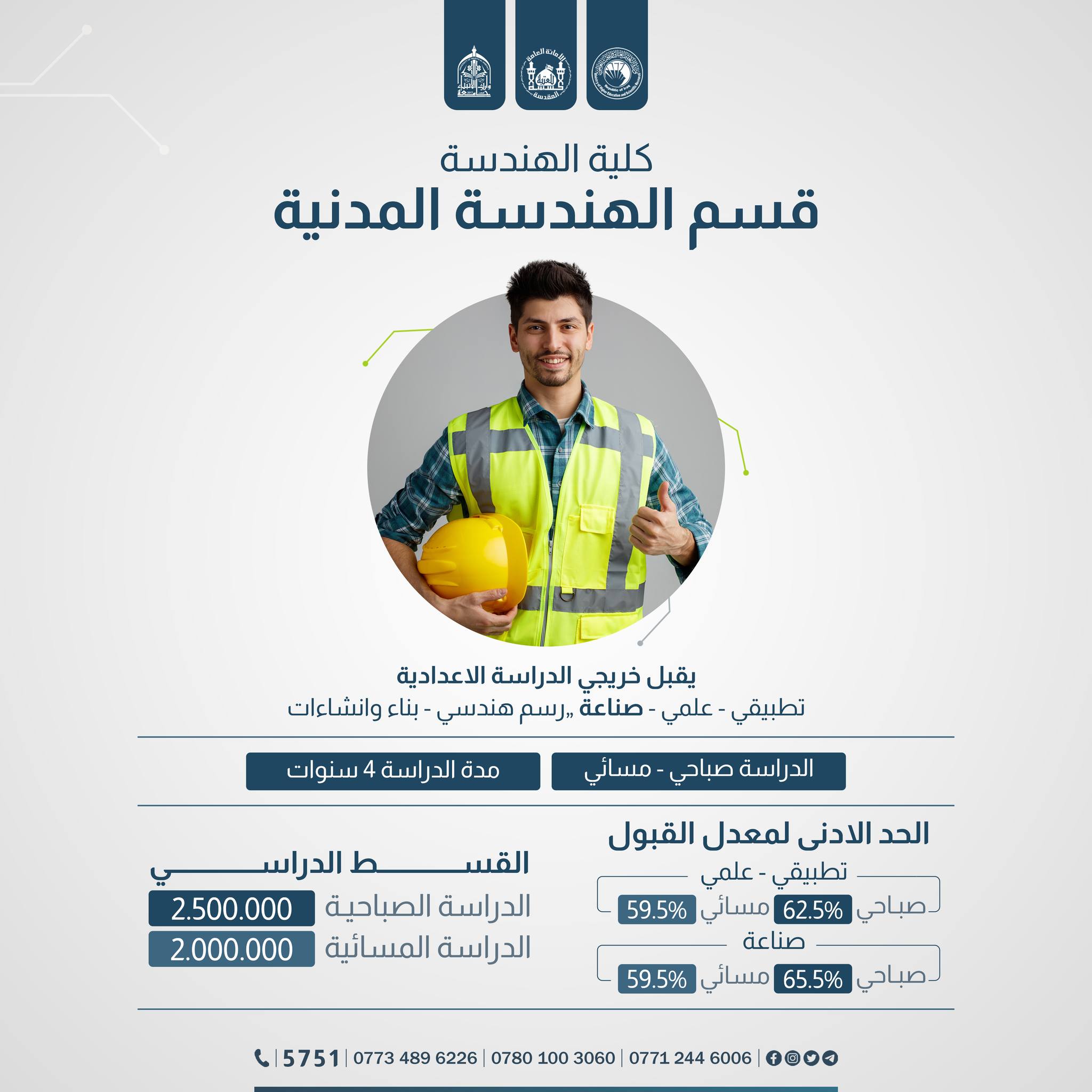 الى الطلبة الإعزاء الراغبين بالتقديم على كليةالهندسة في جامعة وارث الانبياء(عليه السلام) تعرفوا على آخر التحديثات في المعدلات والمدخلات خلال الأسبوع الأخير من الفترة الرسمية للتسجيل.