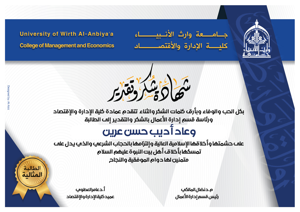 قامة عمادة الكلية ومجلسها الممثل بالاستاذ الدكتور عامر العطوي ود.نضال المالكي ود.فهد الشمري بتكريم الطلبة الاوائل للدراسة الصباحية والمسائية للمرحلتين الاولى والثانية وللقسمين المحاسبة وادارة اعمال في يوم الاحد 3/3/2019 وكذلك تم تكريم افضل طالبة محتشمة لكل قسم وقد حضر مجموعة من السادة التدريسيين والطلبة حفل التكريم