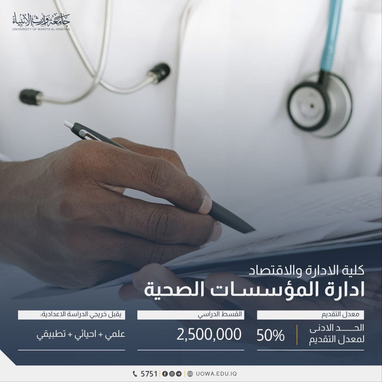 اكتشف مدخلات القبول والمعدلات المطلوبة لأقسام كليات الادارة والاقتصاد في جامعة وارث الانبياء (ع)