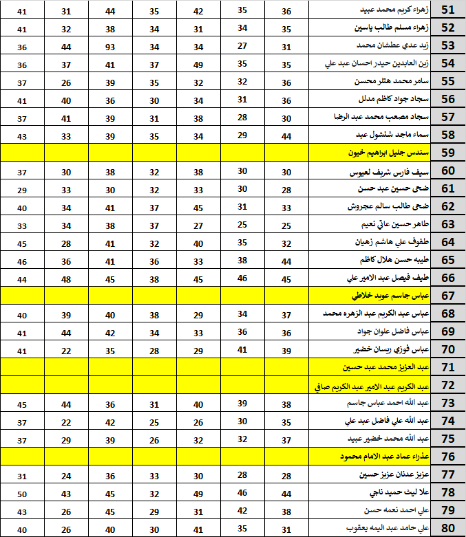 درجات السعي السنوي لطلبة قسم المحاسبة / المرحلة الثانية صباحي