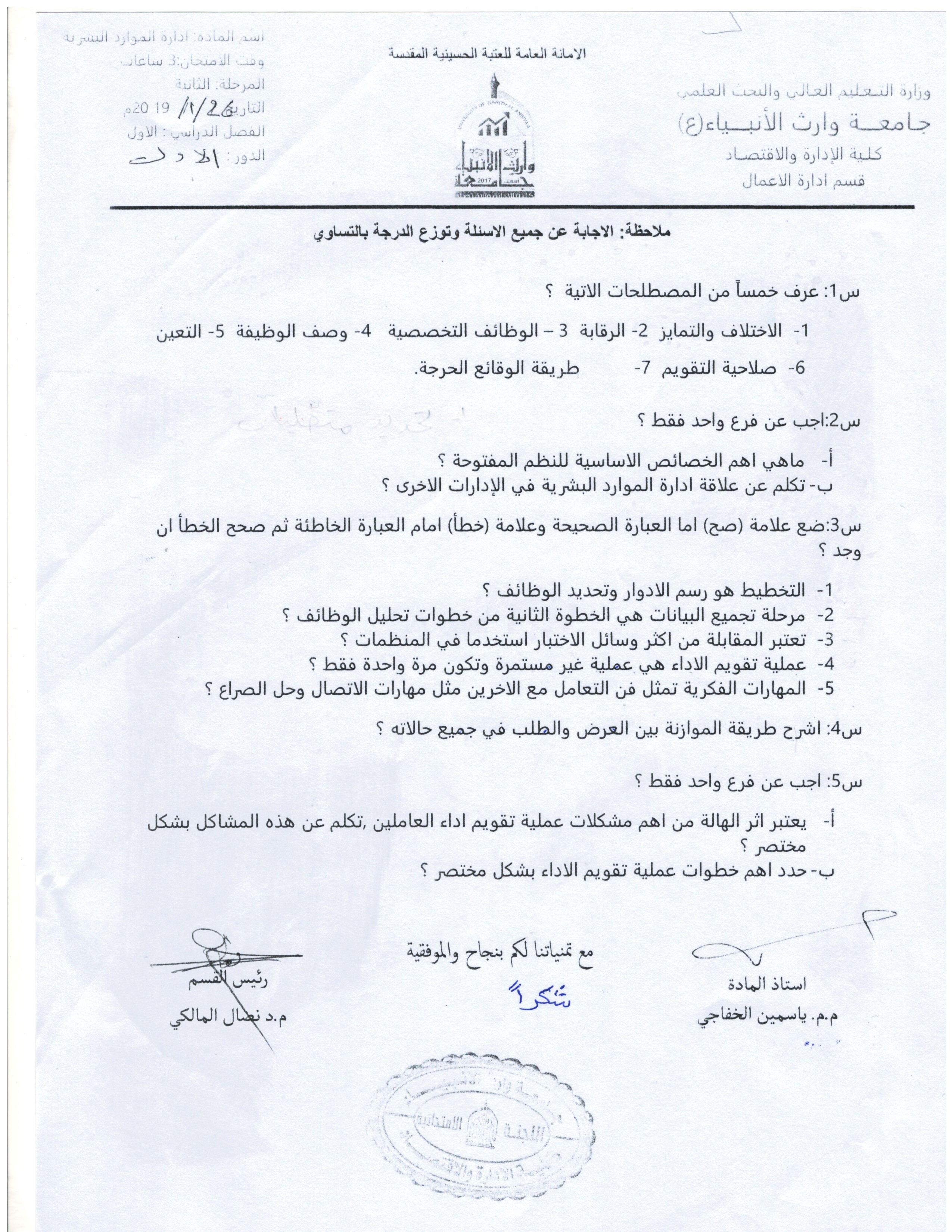 بعض اسئلة الكورس الاول للمرحلة الاولى والثانية ولقسمي المحاسبة وادارة الاعمال المجموعة الثانية