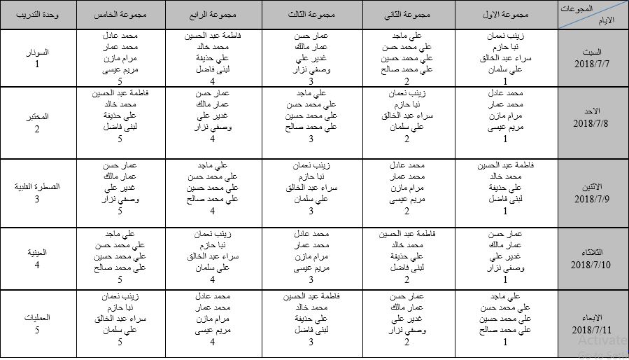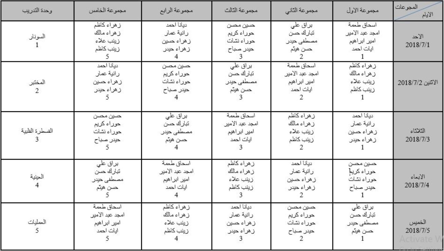 اسماء طلبة التدريب الصيفي الوجبة الأولى / الاسبوع الأول