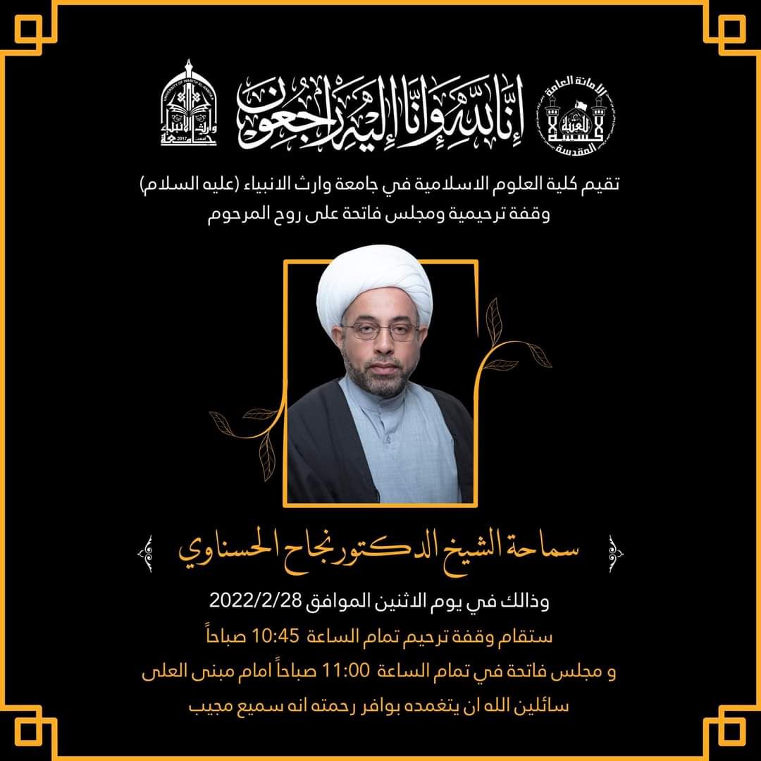 بقلوب راضية بقضاء الله وقدره... تنعى عمادة كلية العلوم الاسلامية رحيل الطالبة ( انصاف مهدي كاظم ) قسم علوم القرآن / المرحلة الثالثة / الدراسة المسائية نسأل الله ان يجعلها مع محمد وال محمد وان يلهم ذويها الصبر والسلوان وانا لله وإنا إليه راجعون