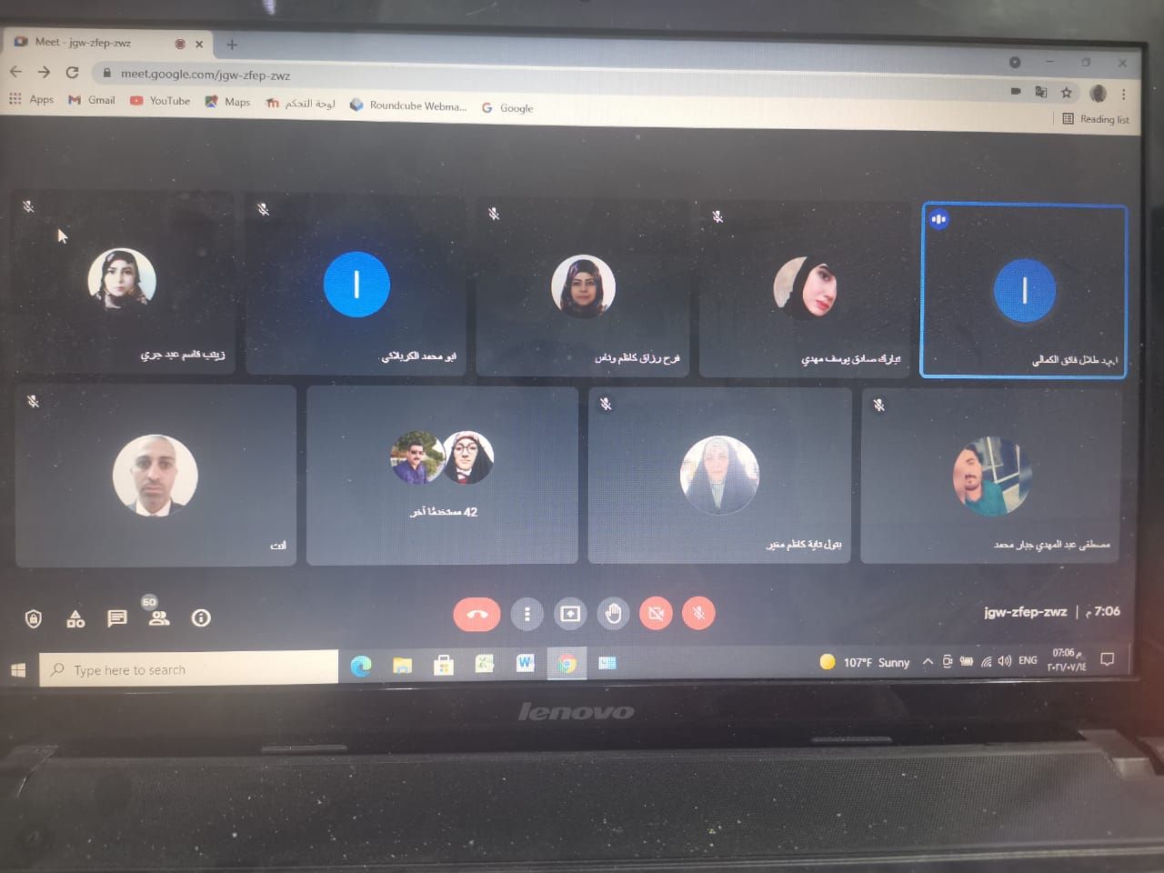 2021/07/14حلقة نقاشية بعنوان ( الصفات الصوتية معيارا دلاليا عند المتصوفة) يحاضر فيها الدكتور علاء صالح عبيد ويديرها الدكتور حكيم السلطاني في يوم الثلاثاء الموافق ١٣ / ٧ / ٢٠٢١ في تمام الساعة الثامنة والنصف مساءً عبر منصة التعليم الإلكتروني الكوكل ميت