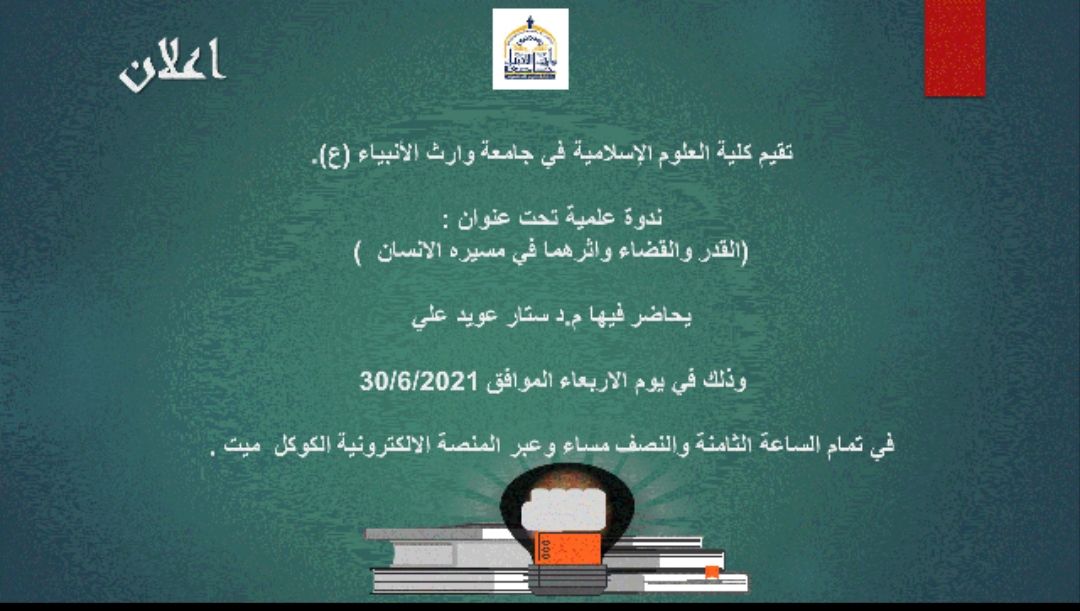 حددت كلية العلوم الاسلامية في جامعة وارث الانبياء موعد انطلاق امتحانات الشهر الثاني من الفصل الدراسي الثاني للعام 2020-2021 والذي ستنطلق في السادس والعشرين من شهر حزيران وسيكون وفق اليات دقيقة بما يحقق الرصانة العلمية عند اداء الامتحانات , متمنين لطلبتنا الاعزاء دوام التوفيق والنجاح وندعوهم الى المثابرة العلمية لتحقيق النجاح.