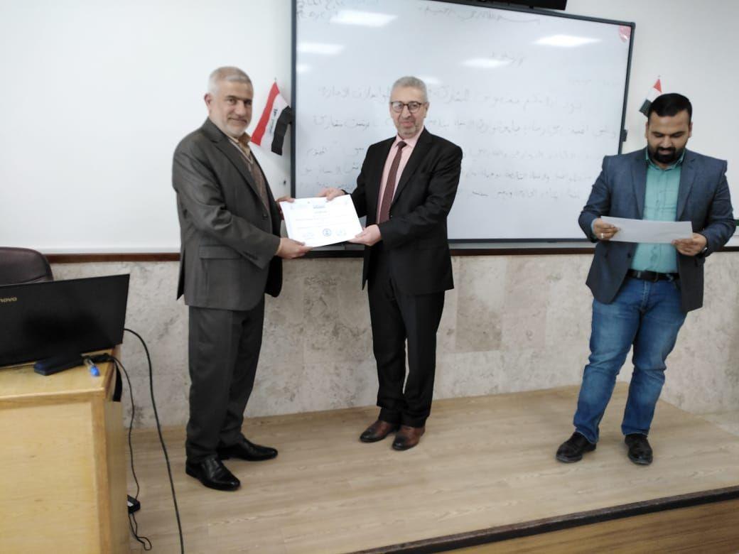 عقدت ندوة علمية بتاريخ 23/2/2020 وبحضور السيد العميد والسادة التدريسيين القتها أ.م.د نور الساعدي والتي اشارت فيها الى الخطوات العلمية والادارية لمعاملات الترقيات العلمية المعمول بها في الجامعلت العراقية .. جاءت هذه الندوة بعد حصول الدكتورة الساعدي على اللقب العلمي وترقيتها الى أ.م.د في نهاية العام الماضي وختمت الندوة بمجموعة من الاسئلة والنقاشات العلمية من قبل السادة التدريسيين بذلك الخصوص .