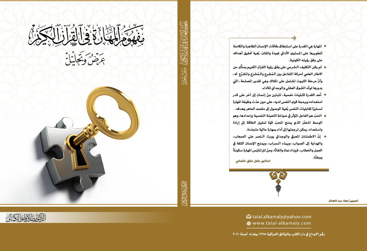 صدر في كربلاء للدكتور طلال فائق الكمالي عميد كلية العلوم الإسلامية / جامعة وارث الأنبياء كتابا فكريا بعنوان (المهارة في القرآن الكريم)
