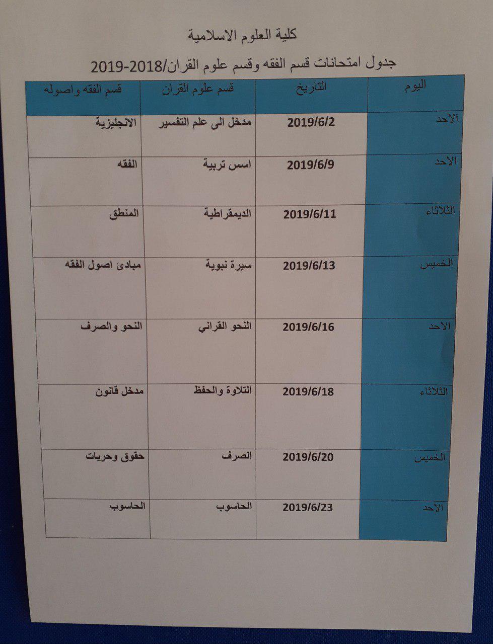الى طلبتنا الاعزاء / كلية العلوم الاسلامية ..