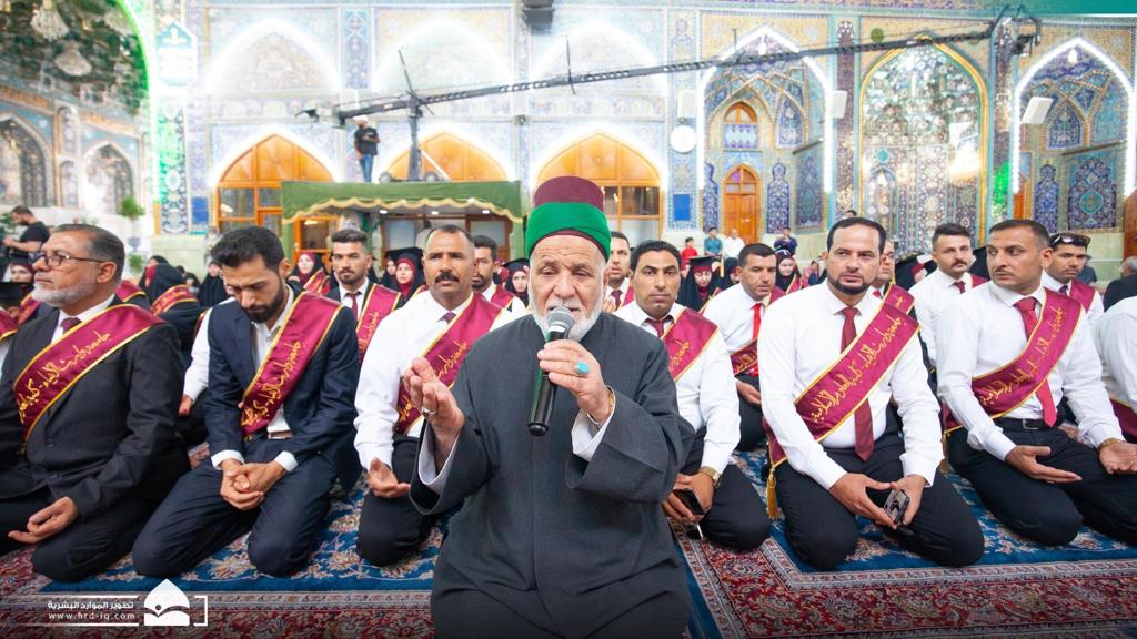 حيث جرى الحفل البهيج في الصحن الحسيني الشريف، بحضور عميد الكلية الاستاذ المساعد الدكتور طلال الكمالي والسادة والسيدات اعضاء هيئة التدريس .