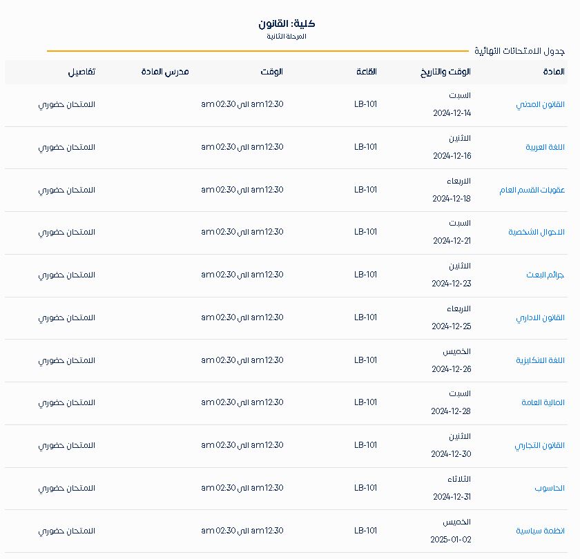 لمعاينة الجدول اضغط هنا : جدول المرحلة الرابعة