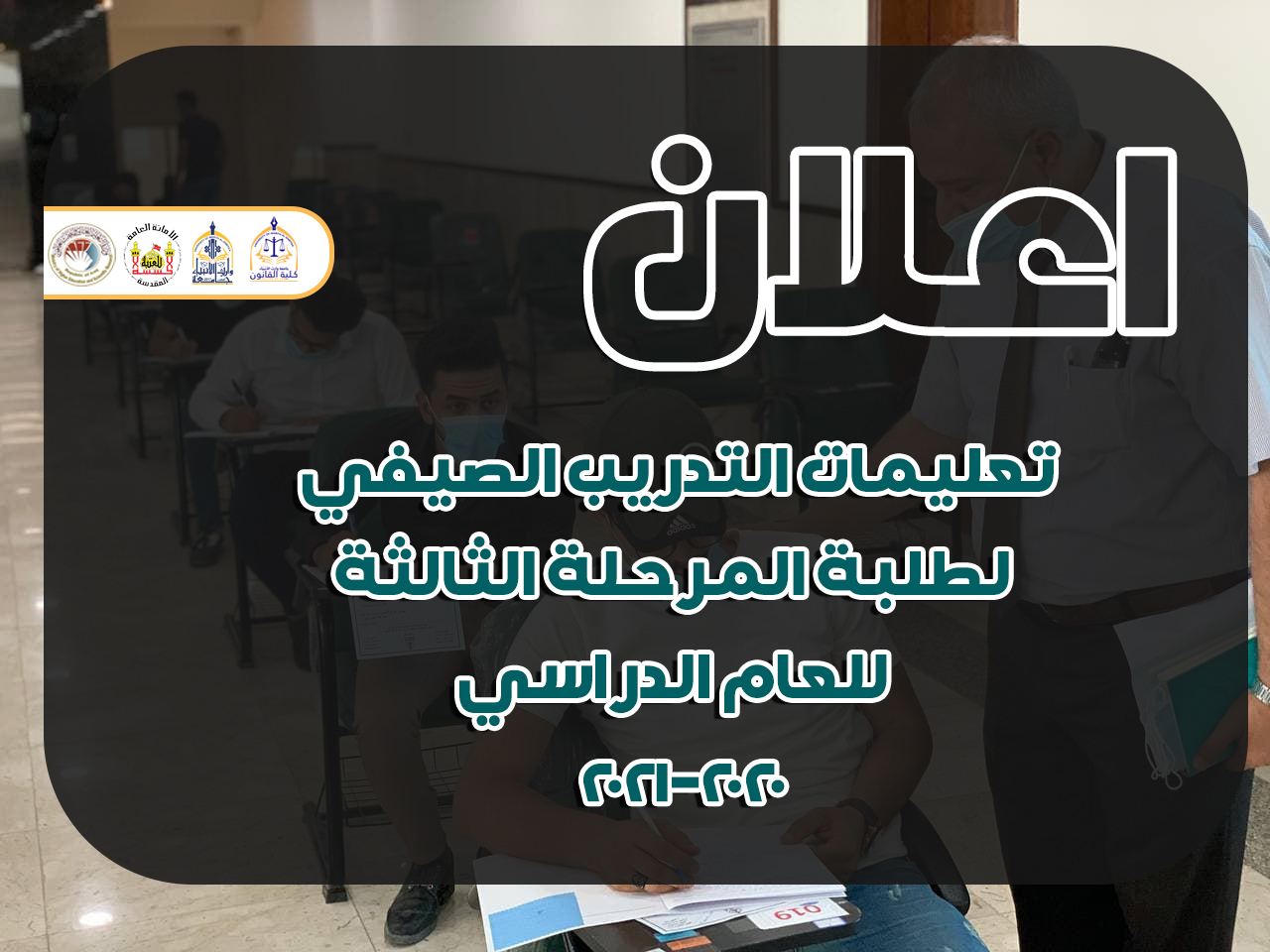 3. عدم جواز الغياب ألابعذر رسمي يقدم الى المحكمة ورئيس اللجنة المشرفة على التدريب الصيفي.