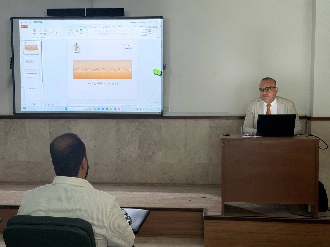 رعاية السيد رئيس جامعة وارث الأنبياء أ.د ابراهيم سعيد الحياوي وباشرف السيد عميد كلية الاعلام (أ.م.د محمد جمال الطيف) أقامت شعبة شؤون المرأة في جامعة وارث الأنبياء(عليه السلام) وبالتعاون مع كلية الإعلام ندوه بعنوان (توظيف الإعلام في الحد من ظواهر العنف والتحرش والابتزاز) قدمها التدريسي في قسم الإعلام الرقمي (م. د أمجد علي عبد الكاظم) يوم الاثنين الموافق (2025/11/22) بمقر الجامعة بحضور اساتذة وطلبة كلية الاعلام.