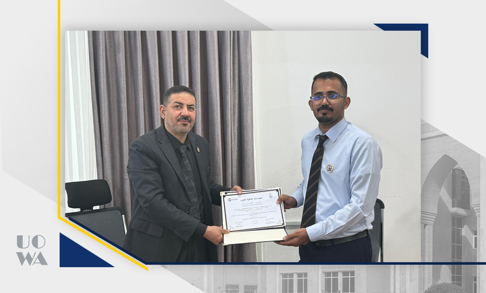 كرّم رئيس جامعة وارث الأنبياء (ع) الأستاذ الدكتور إبراهيم سعيد الحياوي، مجموعة من الطلبة المتميزين خلال فعالية يوم البوستر العلمي و التي أُقيمت في كلية الطب، وذلك تقديراً لجهودهم التي تعكس روح الالتزام العلمي والبحث الأكاديمي في الجامعة.