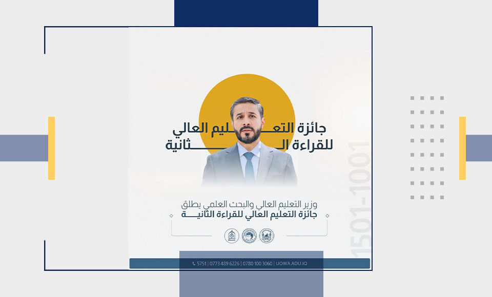 أطلق معالي وزير التعليم العالي والبحث العلمي، الدكتور نعيم العبودي، النسخة الثانية من (جائزة التعليم العالي للقراءة) التي تبلغ قيمتها 100 مليون دينار عراقي، موزعة على 40 فائزاً. تأتي هذه المبادرة كفعالية ثقافية رائدة تهدف إلى تحفيز الوعي الثقافي بين الطلبة، وتشجيعهم على التفاعل الإيجابي مع القراءة غير النمطية. كما تسعى الجائزة إلى توفير بيئة تعليمية جادة تُعزز المسار الثقافي والمعرفي في الجامعات، وتساهم في مراجعة المتون الحضارية وتحليل مضمونها لمواجهة التحديات وتقليل الاستهلاك.