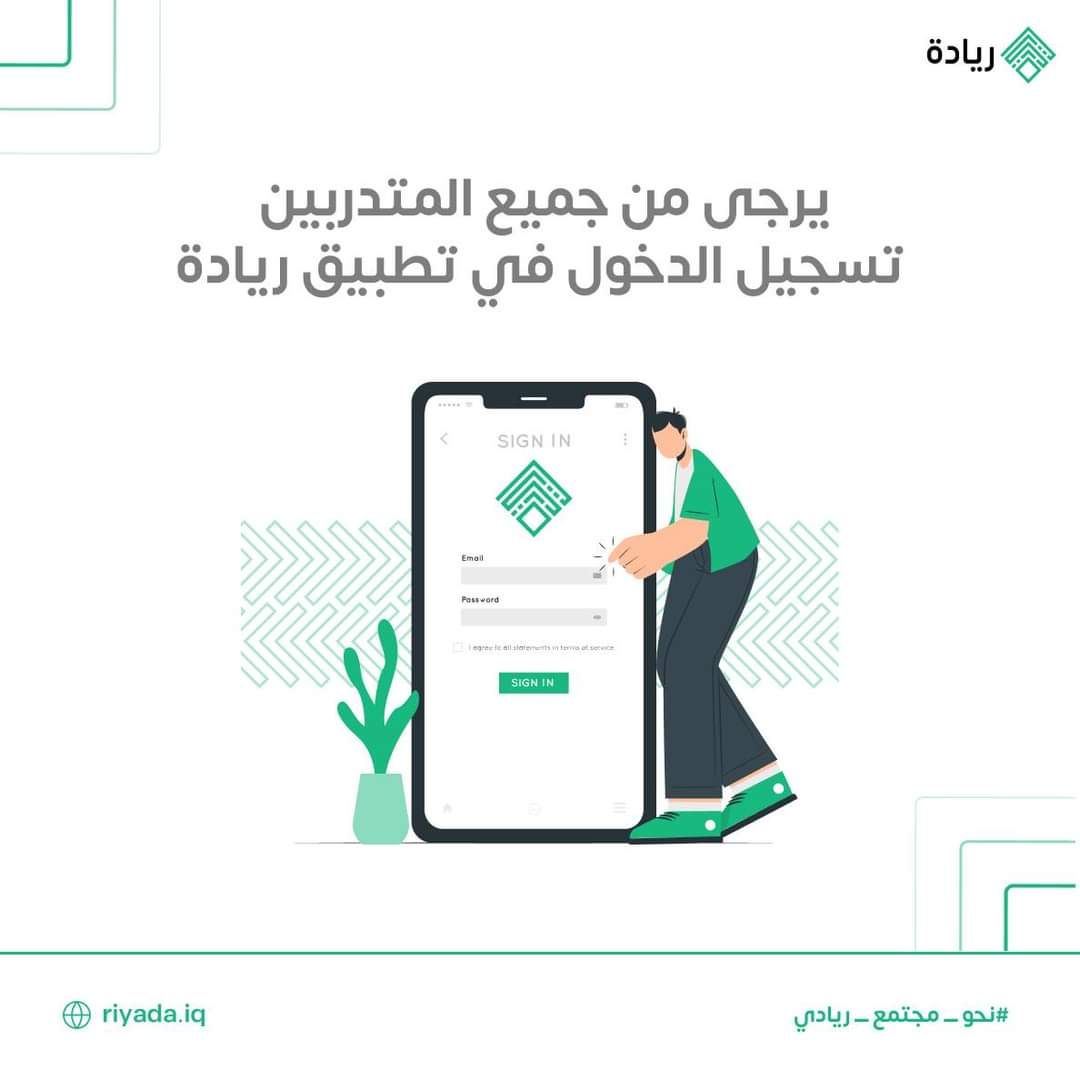 الى جميع المتدربين المشاركين في مبادرة ريادة القيام بتسجيل الدخول لحساباتهم الشخصية في التطبيق.