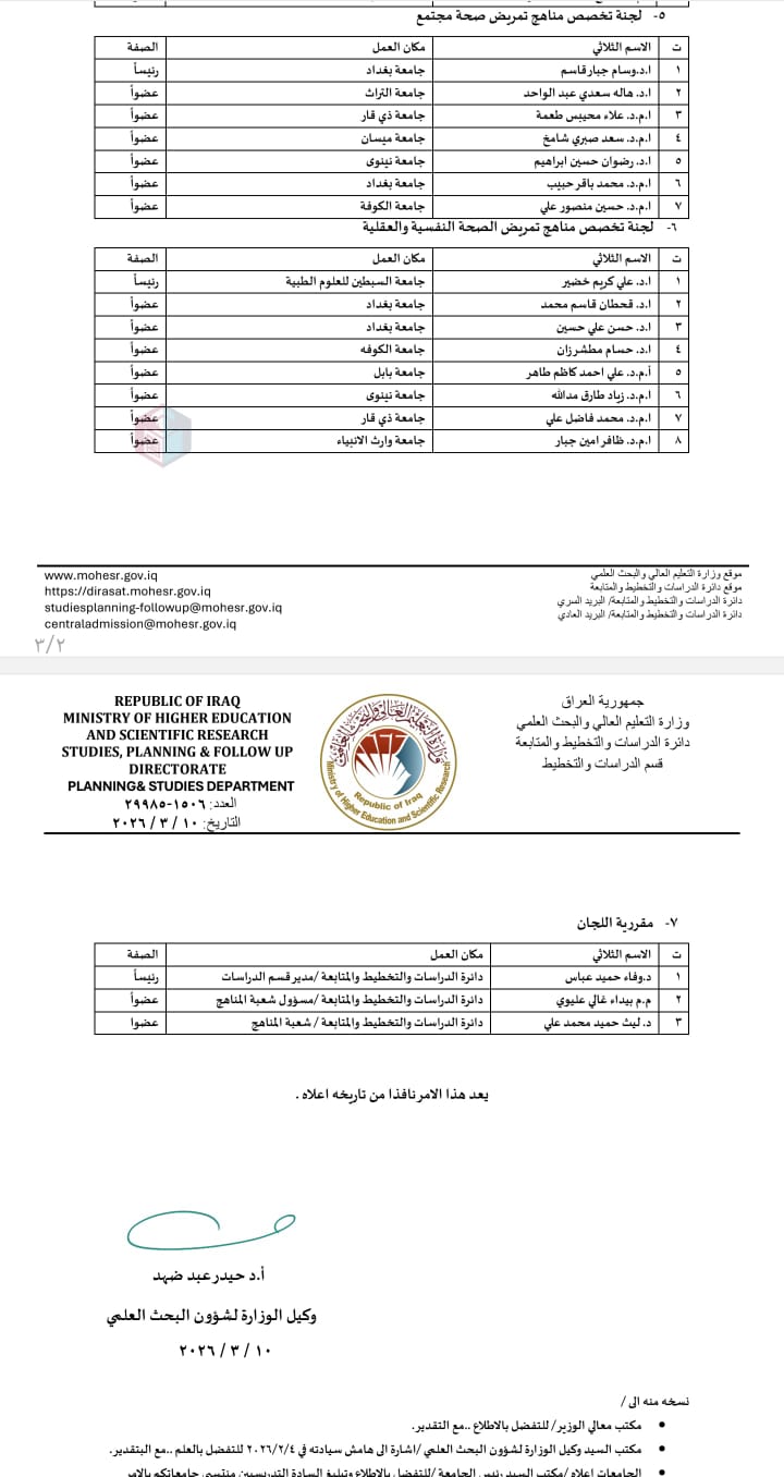 • الأستاذ الدكتور مرتضى غانم عداي (جامعة وارث الأنبياء / كلية التمريض) – عضوًا.