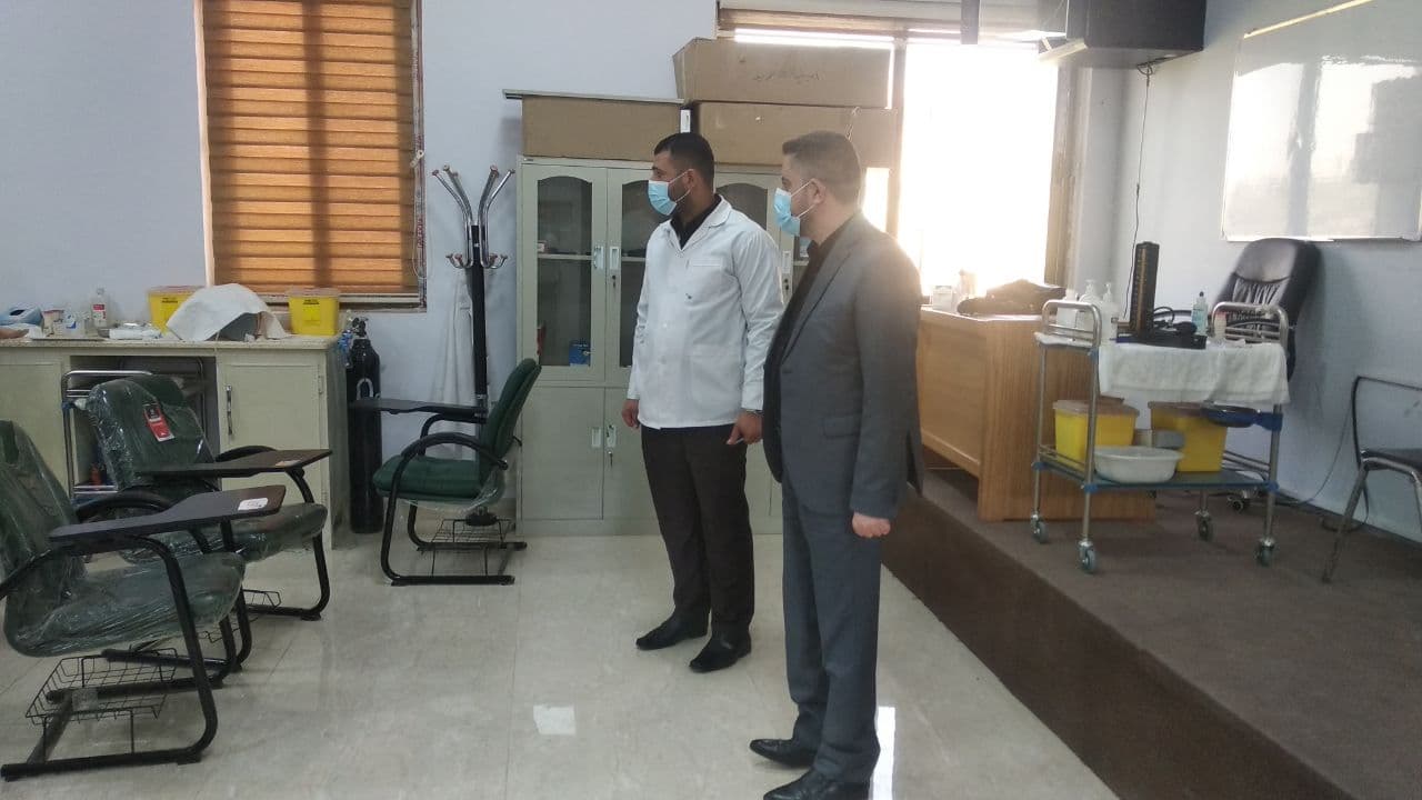 تابع السيد عميد كلية التمريض الاستاذ المساعد الدكتور مرتضى غانم الجبوري سير الامتحانات النهائية العملية الحضورية لطلبة كلية التمريض