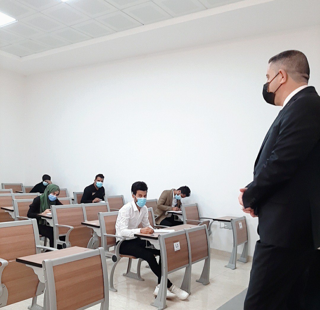 وبمتابعة حثيثة من قبل السيد عميد الكلية ( ا.م.د مرتضى غانم ) على عمليك سير الامتحانات والالتزام باجراءات الوقاية والسلامة .