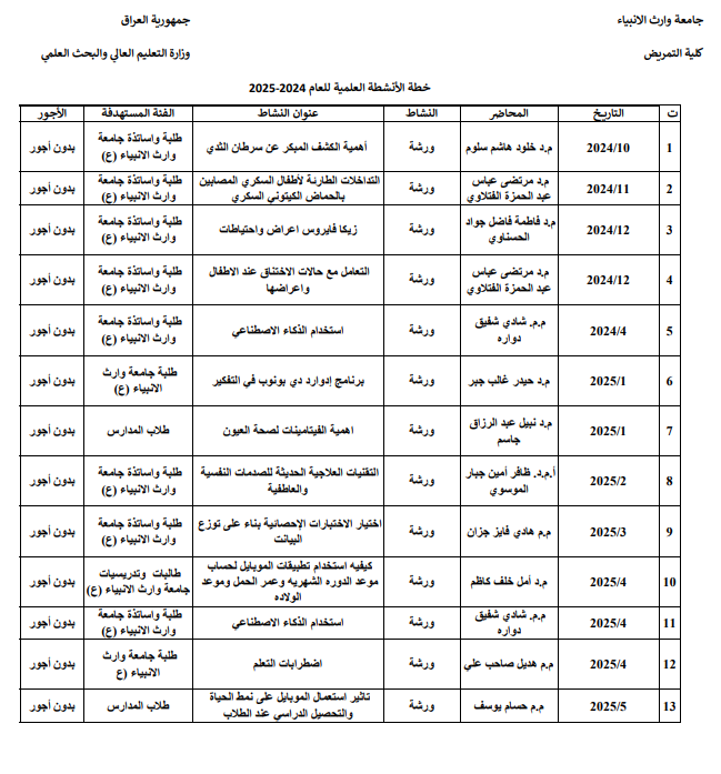 تم اقامة ورشة علمية لقسم هندسة تقنيات الروبوتات والذكاء الاصطناعي تحت عنوان (رحلتك في عالم الروبوتات والذكاء والاصطناعي)