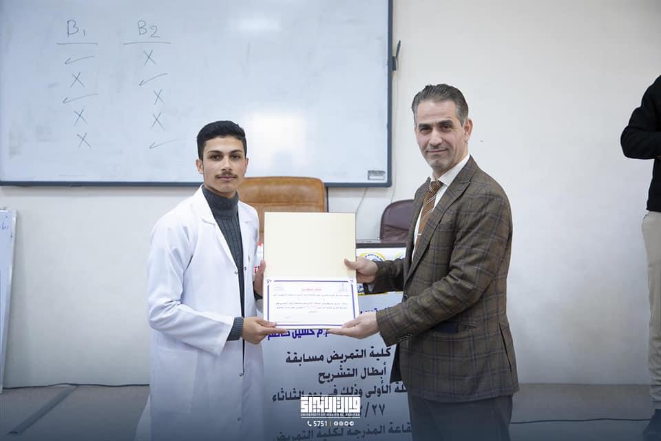 برعاية عميد الكلية الاستاذ الدكتور مرتضى الجبوري، والسيد معاون العميد الاستاذ المساعد الدكتور اقامت كلية التمريض في جامعة وارث الانبياء(عليه السلام) مسابقتها الاولى لطلبة المرحلة الاولى بعنوان (أبطال التشريح)
