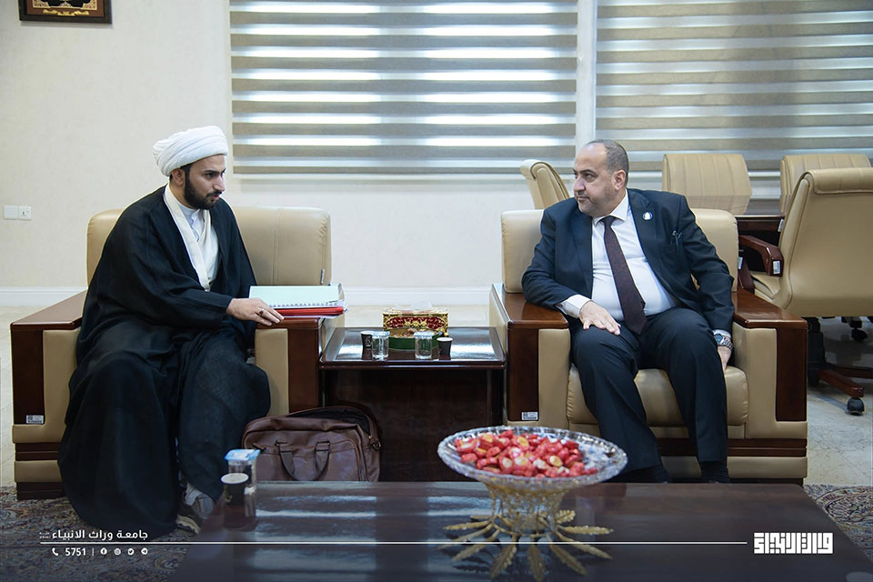 في إطار تعزيز التعاون بين المؤسسات الأكاديمية والمهنية، استقبلت رئاسة جامعة وارث الأنبياء (عليه السلام) نقيب أطباء كربلاء، الدكتور ماجد الميالي، لبحث آليات استمرار التعاون العلمي والتنسيق المشترك في المجالات الطبية والتعليمية.