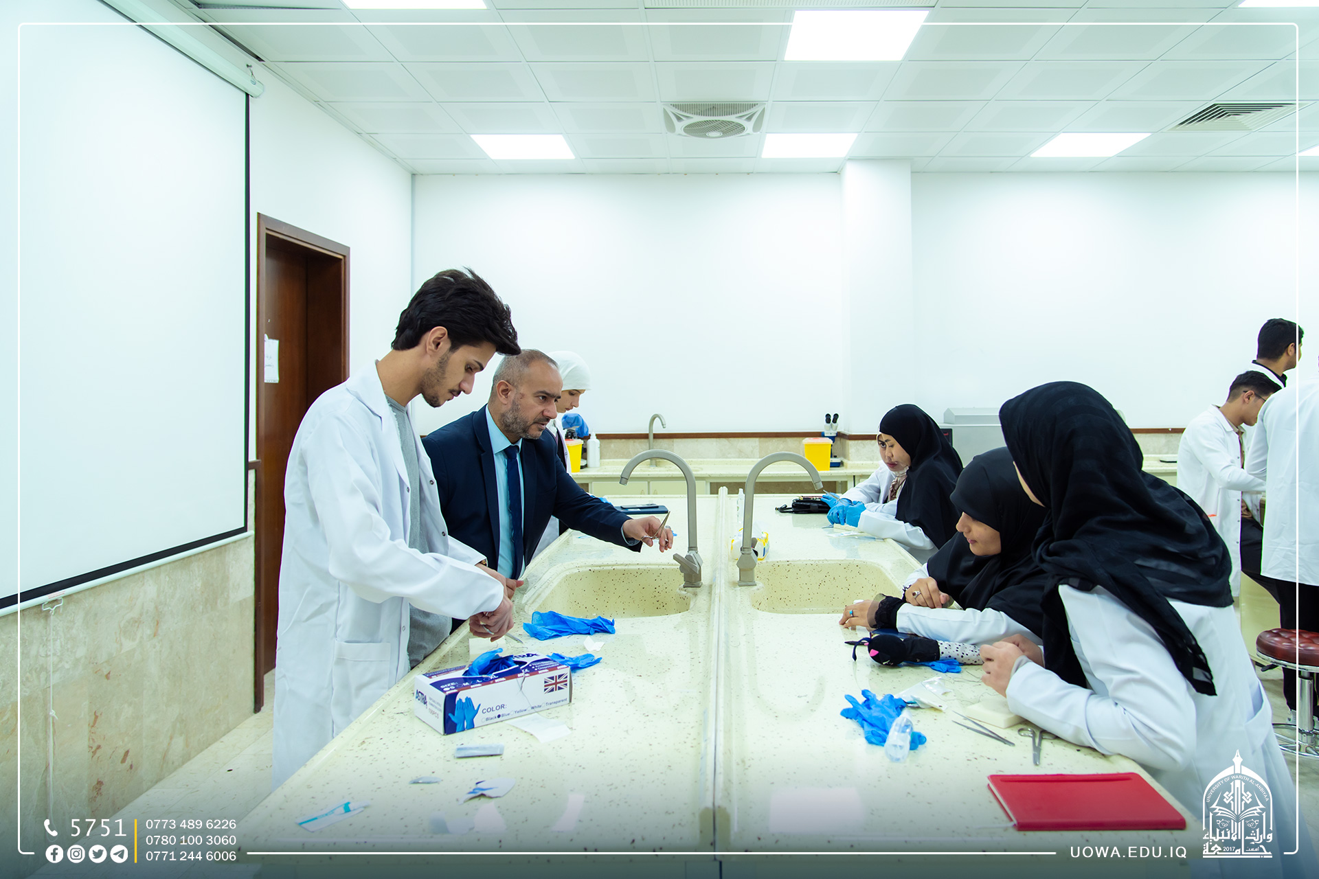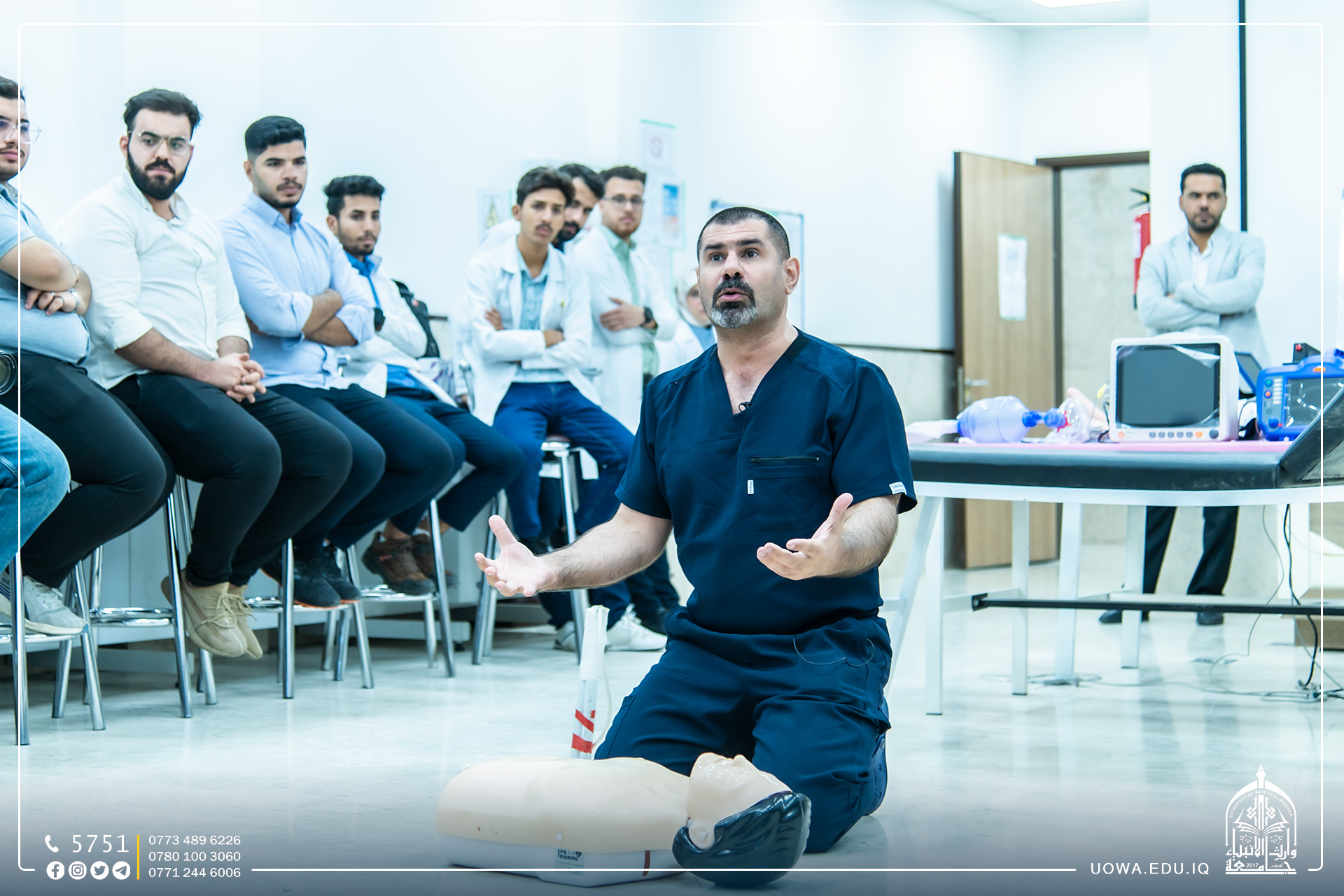 استضافت جامعة وارث الأنبياء (عليه السلام) عدد من الأطباء والمتخصصين لافتتاح "الكورس التدريبي المكثف الأول" لطلبة كلية الطب وسيتم تكرار البرنامج لمرات عديدة لتحقيق التدريب الجيد وتطبيق أفضل المهارات العلمية وليشمل جميع الطلبة، حيث أن العدد الكلي للمتدربين هو 90 طالب.