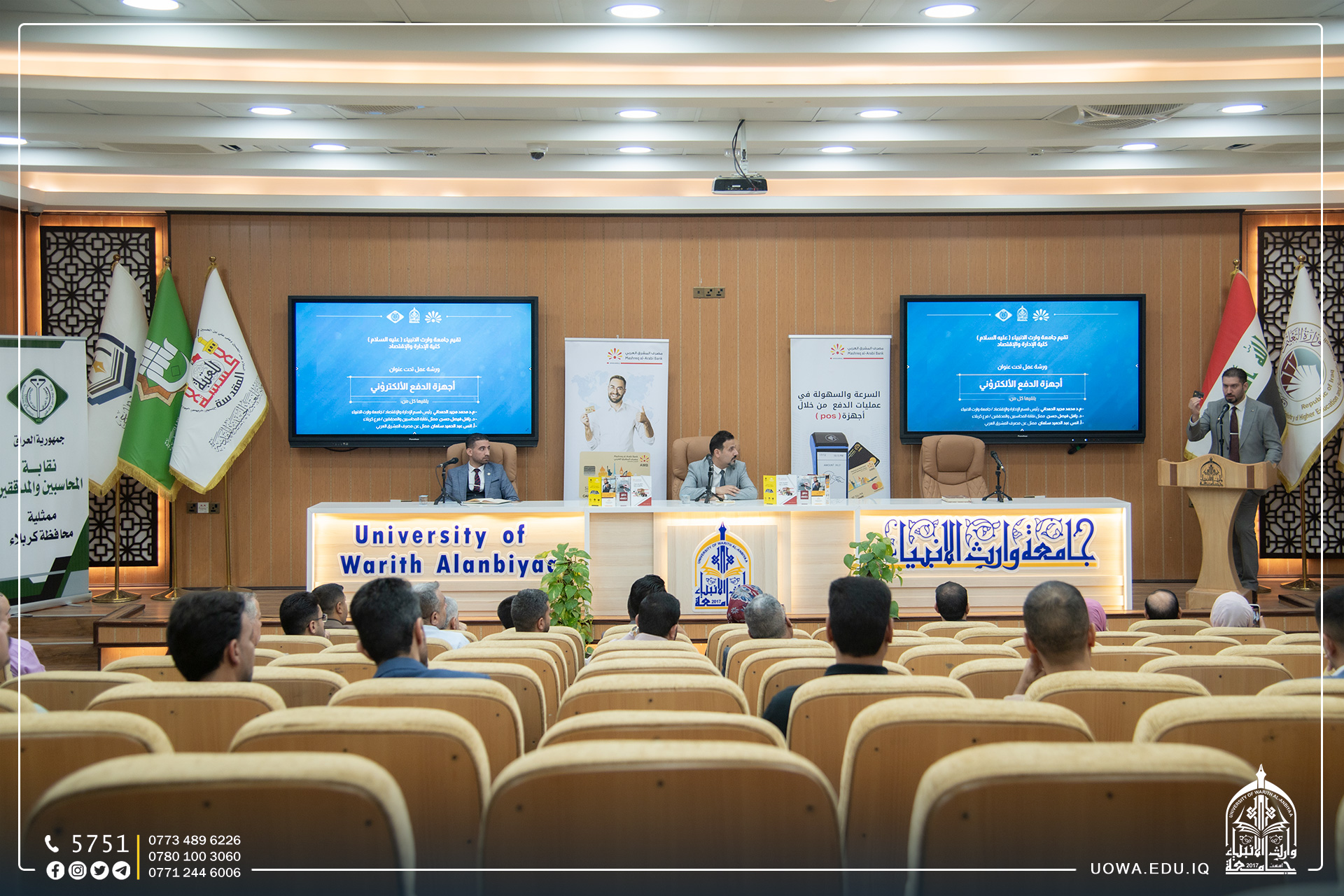 دعماً لتوجيهات البنك المركزي العراقي والقرارات الحكومية الصادرة لنشر الوعي حول ثقافة الدفع الالكتروني ومن بينها اجهزة نقاط البيع (POS)، أقامت كلية الادارة والاقتصاد/ قسم إدارة الاعمال، وبالتعاون مع نقابة المحاسبين والمدققين في كربلاء المقدسة ومصرف المشرق العربي الإسلامي، ورشة عمل حول أجهزة الدفع الالكتروني.