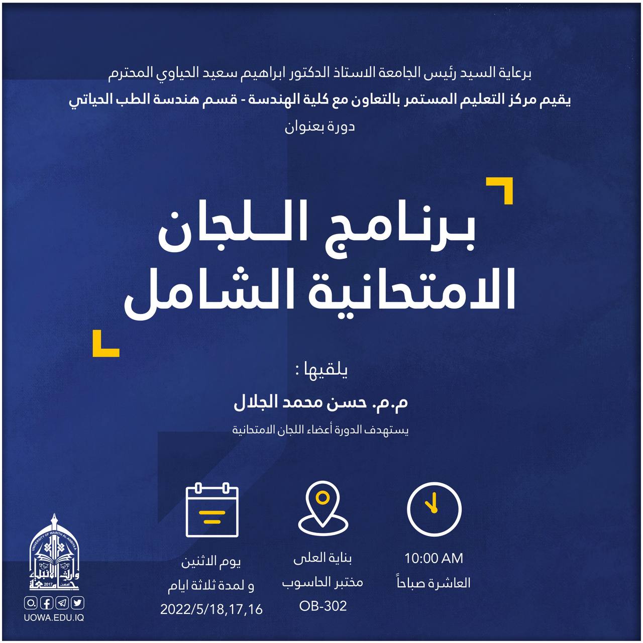 "برنامج اللجان الامتحانية الشامل" يلقيها م.م حسن محمد الجلال