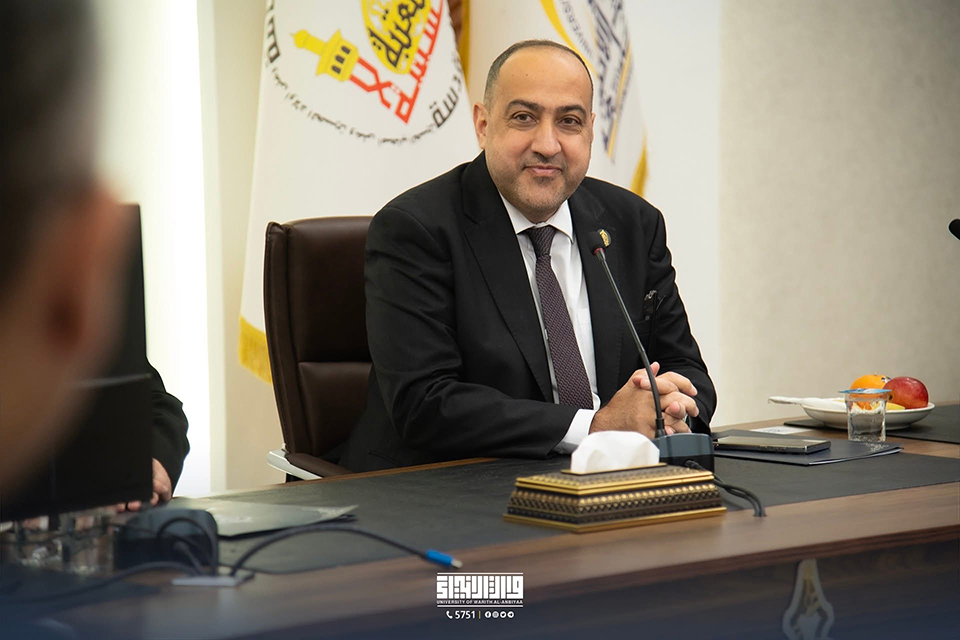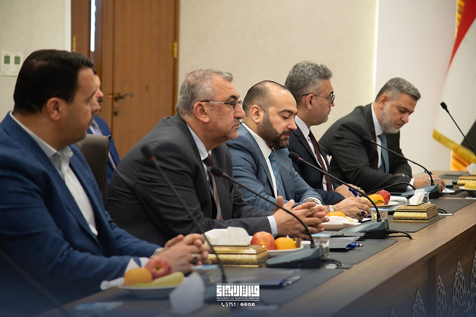 As part of its efforts to strengthen institutional cooperation with state institutions, the Presidency of the University of Warith Al-Anbiyaa received a high-level delegation from the Iraqi Ministry of Foreign Affairs, headed by the Deputy Minister for Political Planning, Dr. Hisham Al-Alawi. The delegation was welcomed by the University President, Professor Dr. Ibrahim Saeed Al-Hayyawi, accompanied by the Vice President for Scientific Affairs, Professor Dr. Waqed Al-Moussawi, and members of the University Council.