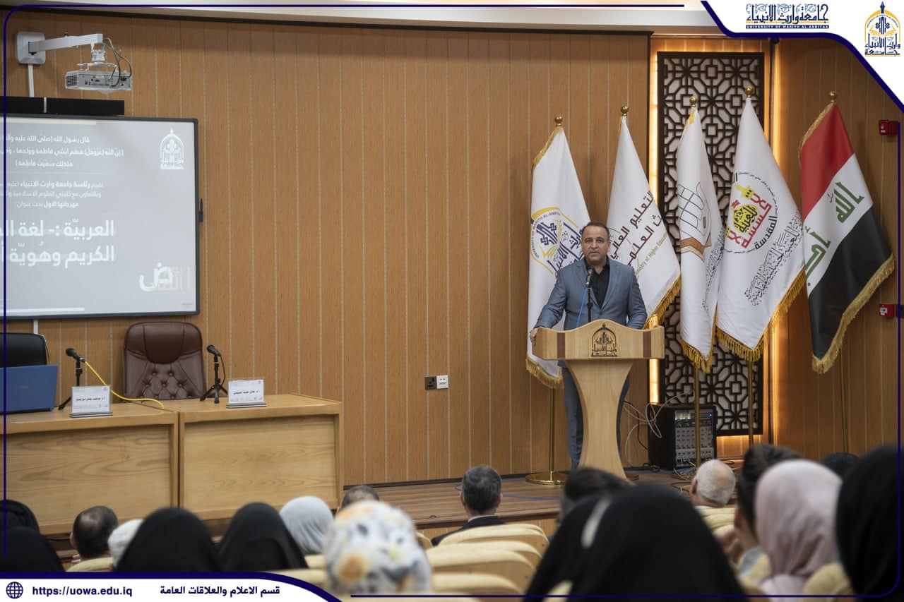 On the occasion of World Arabic Language Day, and in the presence of Mr. Haider Al-Tamimi, Head of the Higher Education Authority, and under the patronage of the President of the University, Professor Dr. Ibrahim Al-Hayawi, Warith Al-Anbiyaa University (Peace Be Upon Him), in collaboration with the Colleges of Islamic Sciences and Law, organized its first festival under the theme "Arabic: The Language of the Holy Quran and the Identity of Our Nation." The festival, spanning two days, welcomed a qualitative and quantitative attendance of Arabic language professors, enthusiasts, and students. The first day of the festival featured the presentation of two research papers by eminent language researchers, highlighting the importance of Arabic as an identity that should be preserved and cherished.