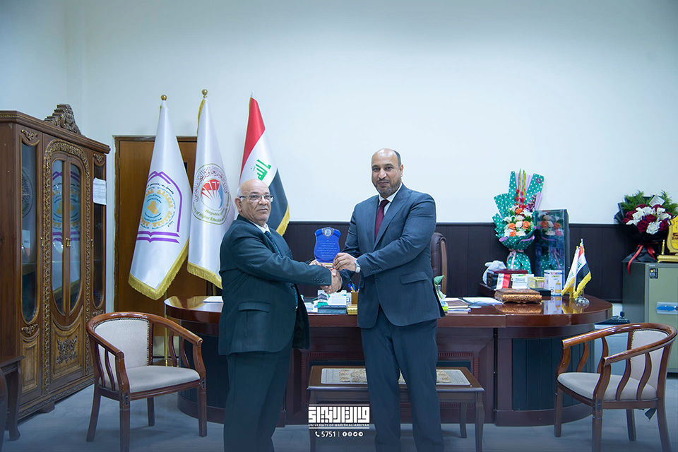 Upon receiving his PhD, Dr. Hussein Maatouq, the assistant dean of the College of Administration and Economics, was congratulated by Dr. Akram Al-Yasiri, who also wished him continued success in supporting education in our beloved nation.