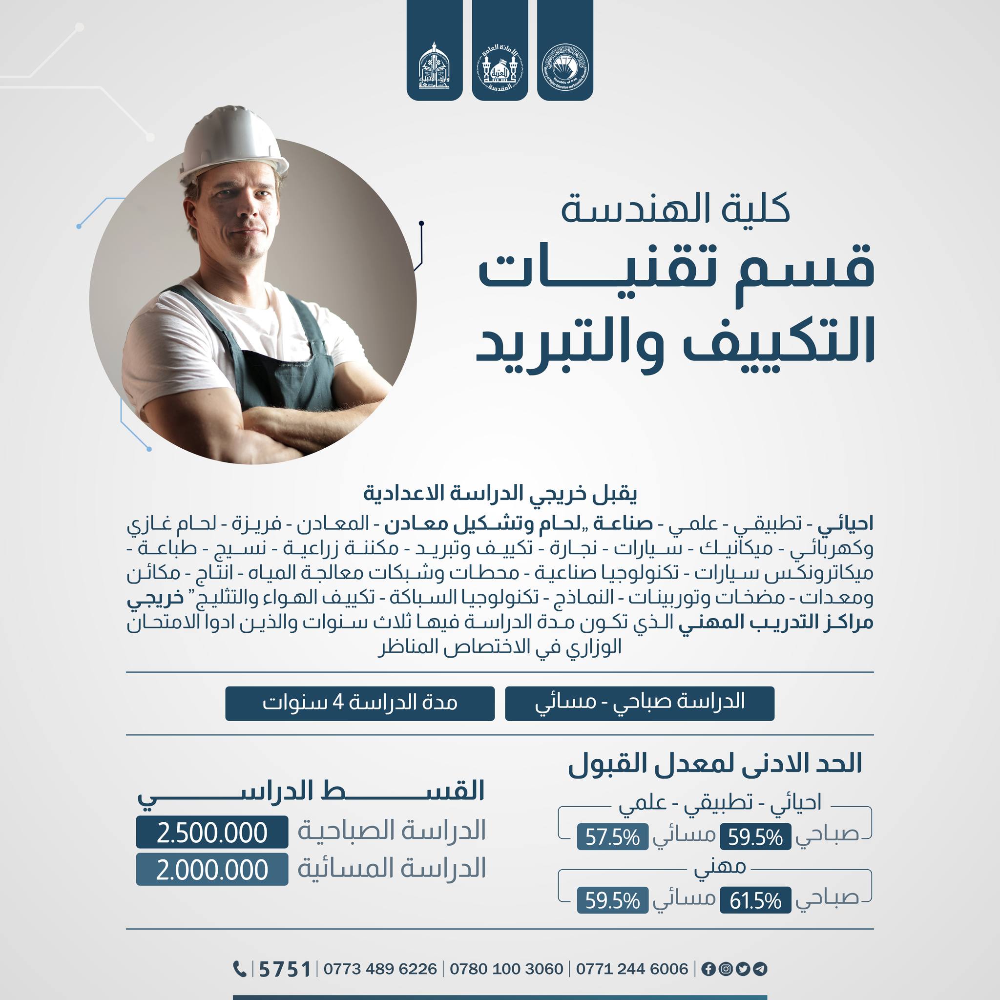 Dear students interested in applying to the College of Engineering at the University of Warith Al-Anbiyaa (peace be upon him), familiarize yourselves with the latest updates in GPA requirements and admissions during the last week of the official registration period.
