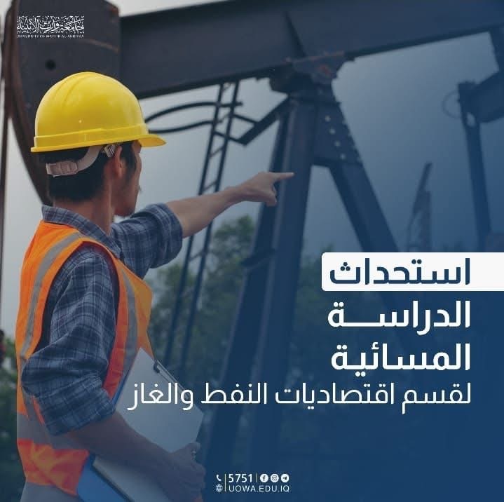 The University of Warith Al-Anbiyaa is pleased to announce the establishment of the Evening Studies Program for the Department of Oil and Gas Economics at the College of Administration and Economics.