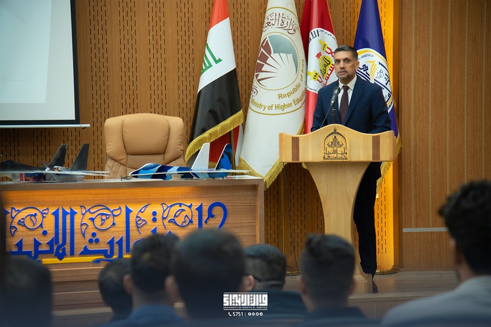 The College of Engineering held a “ceremony honoring the students of the Aircraft Engineering Department,” which was sponsored by the President of the University, Professor Dr. Ibrahim Saeed Al-Hayawi, and in the presence of the Scientific Assistant, Professor Dr. Waqid Al-Moussawi, and the Dean of the College of Engineering, Assistant Professor Dr. Hussein Hadi Al-Awadi.