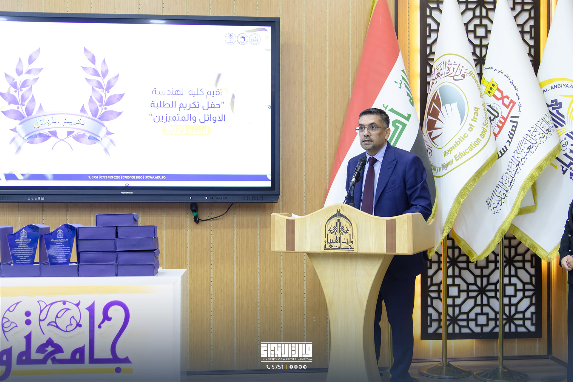 During his speech on the occasion, the Dean of the College of Engineering expressed his thanks and appreciation to all the teaching and administrative staff of the College of Engineering and the students for their high commitment and excellence and the emphasis on all students to be diligent in seeking knowledge and to emulate their outstanding colleagues.
