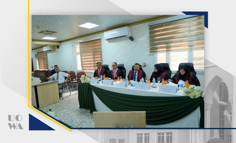 Chaired by Professor Dr. Ali Abdul Saadoun, Dean of the College of Medicine at Warith al-Anbiya University, the discussion of the postgraduate diploma thesis, equivalent to a master's degree, was held at the College of Medicine at the University of Karbala. The thesis, titled "Evaluation of Emotional Difficulties among Women Having Had a Miscarriage in Karbala 2024," was held at the College of Medicine at the University of Karbala. The thesis was titled "Evaluation of Emotional Difficulties among Women Having Had a Miscarriage in Karbala 2024." The Dean participated in moderating the discussion session and praised the academic level and research efforts. He emphasized that these joint scientific collaborations between universities contribute to the exchange of expertise and the strengthening of the status of academic research. They are in line with the College of Medicine at Warith al-Anbiya University's approach to supporting sound research projects that address societal issues.