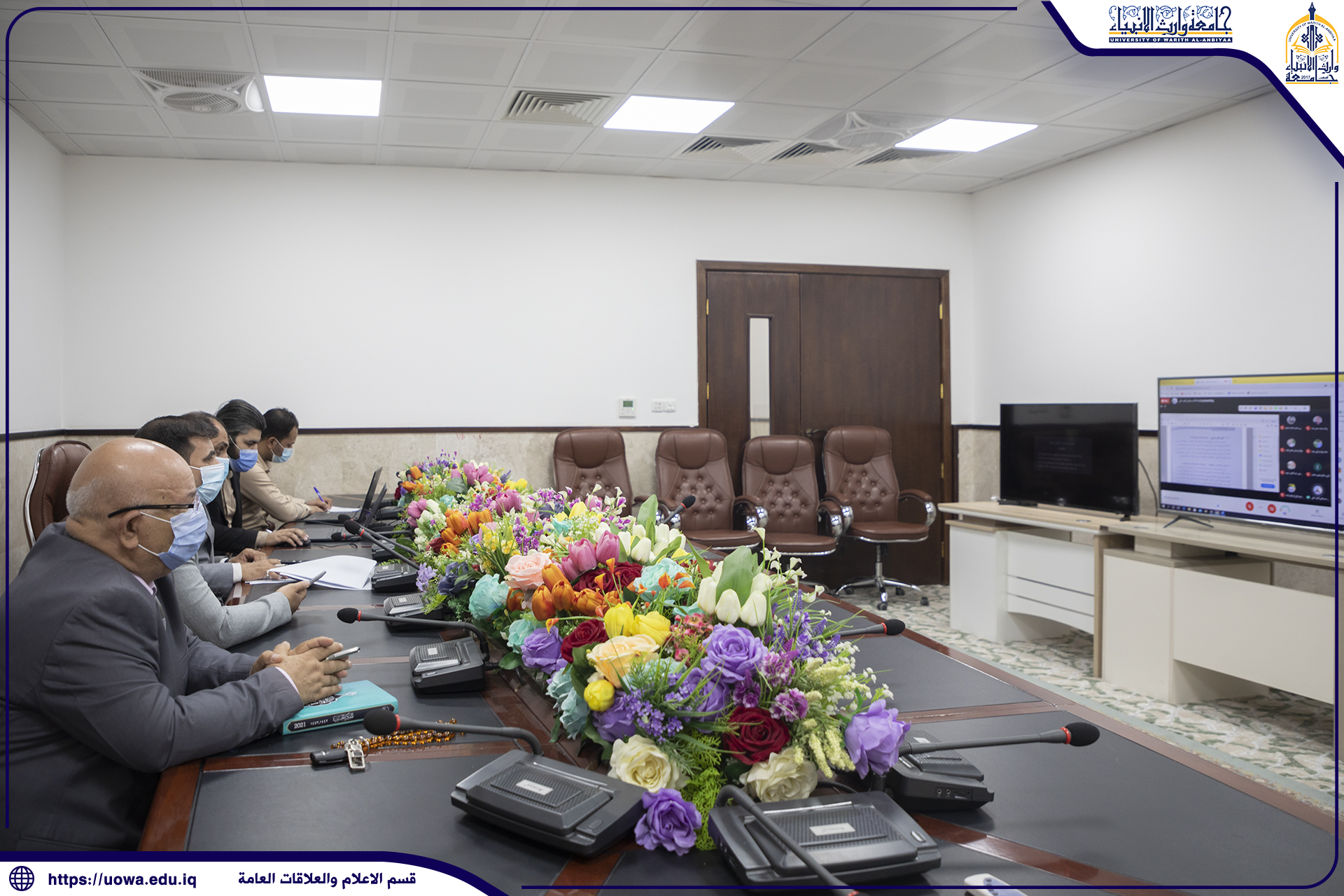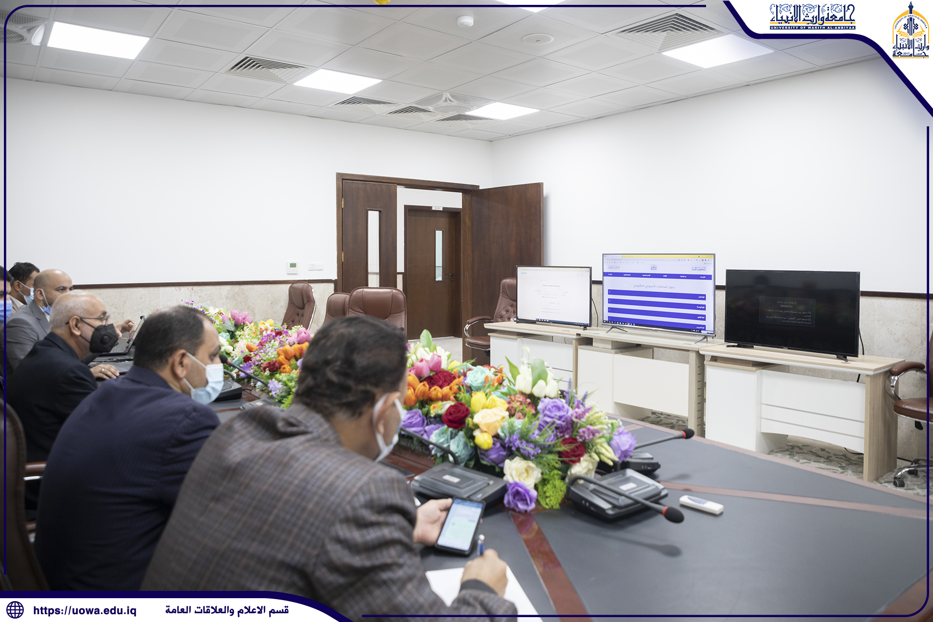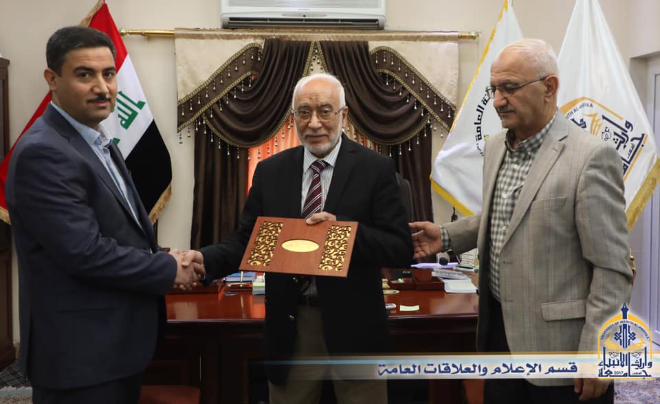 A delegation from Alhamdaniya University, which is located in Nineveh city, visited the University of Warith Alanbiyaa. The delegation was consisted from the scientific assistance Dr. Kazal Yassin, the head of scientific affairs department Dr. Jasim Mohammed Rajab and from El-Shaykh Khair Al-Deen Al-Hadi. The delegation came to discuss the possible agreements and cooperation between the two universities, and was received by the acting President of the University Dr. Abbas al-Daami and some deans of colleges and heads of departments.