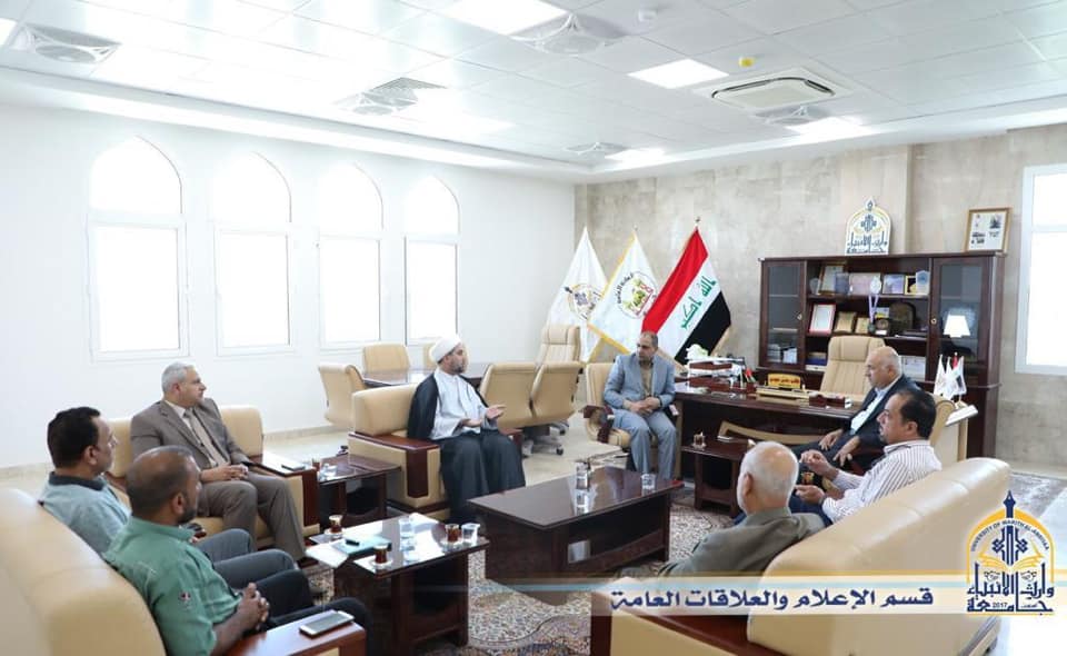 An official delegation from the University of Warith Alanbiyaa and Al Zahraa University which are affiliated to Directorate of Imam Hussain Holy Shrine, headed by the acting President of UOWA Dr. Abbas Al-Daami visited the University of Karbala to congratulate Dr. Basim Khalil Al-Saeedi for being the acting president for the University of Karbala. In return, Dr. Al-Saeedi thanked the delegation for their visit, confirming his university's keenness to cooperate with the two universities in order to promote the educational reality in our country.