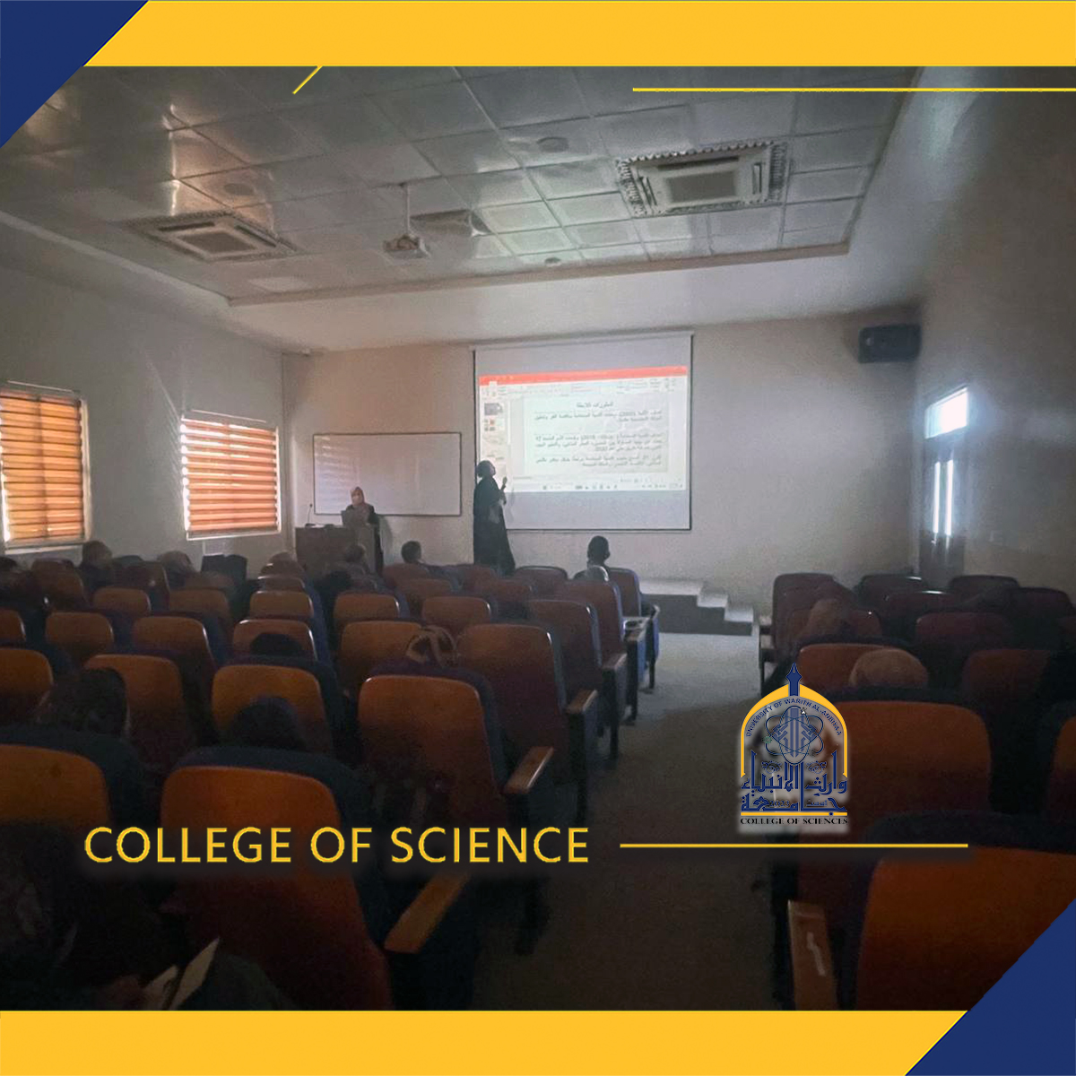 As part of the second axis of economic development for Iraqi women, the Women’s Affairs Unit at the College of Science, Al-Warith Al-Anbiyaa University, organized an educational seminar on “Empowering Iraqi Women in Sustainable Economic Development” on December 3, 2025. The seminar was delivered by Assistant Lecturers Ilaf Ali Safouk and Saja Basim.