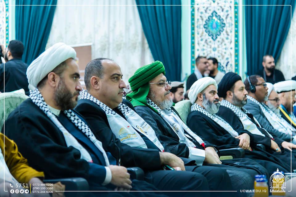 In the presence of the University President, Professor Dr. Ibrahim Al-Hayawi, the "Second International Al-Aqsa Call Conference" was inaugurated within the holy precinct of the Imam Hussein Shrine. The conference is organized by the Al-Aqsa Call Foundation and the Global Campaign to Return to Palestine, under the auspices of the General Secretariat of the Holy Shrine of Imam Hussein (Peace Be Upon Him).
