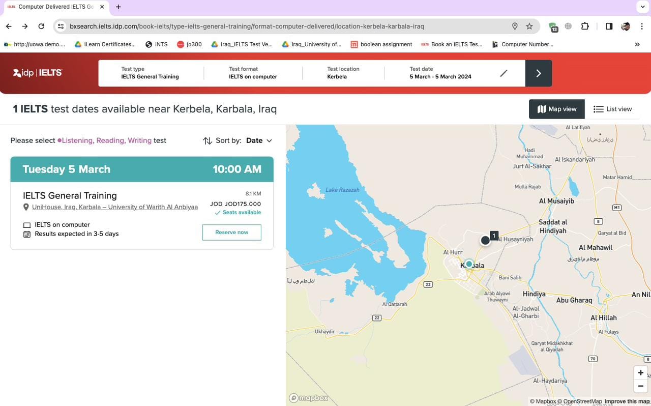 Visit the official website for details: https://ielts.uowa.edu.iq/