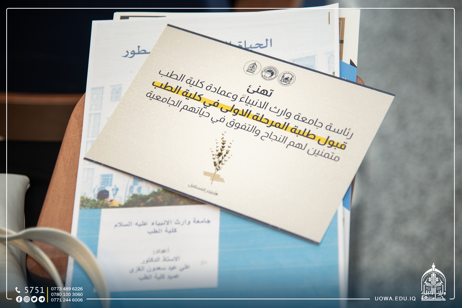 Mr. President of the University, Professor Dr. Ibrahim Al-Hayawi, met with first-year students at the College of Medicine. He welcomed them and congratulated them on their acceptance into the college, urging them to adhere to official schedules, regulations, and university instructions. He also encouraged them to strive for knowledge as they are the future doctors. LastChance to apply (for the second round) to the colleges and departments of the University of Warith Al-Anbiyaa (AS) (Except Medicine).