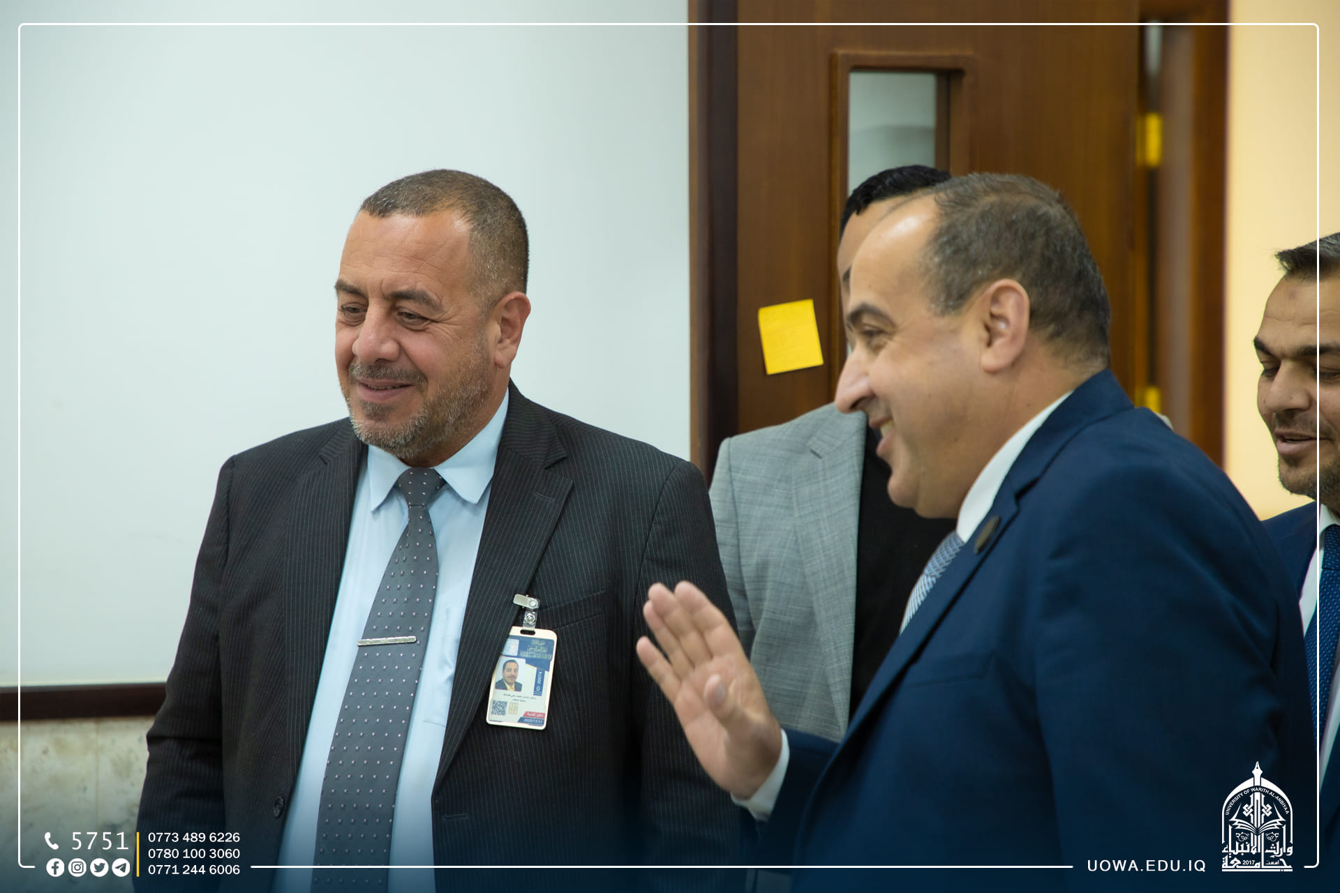 In the context of strengthening collaboration and building ties between educational and religious institutions, Professor Dr. Ibrahim Al-Hayawi, the President of the University of Warith Al-Anbiyaa (AS), welcomed Hajj Rasool Fadhlah, the Head of the System Maintenance Department at the Holy Shrine of Imam Hussain.