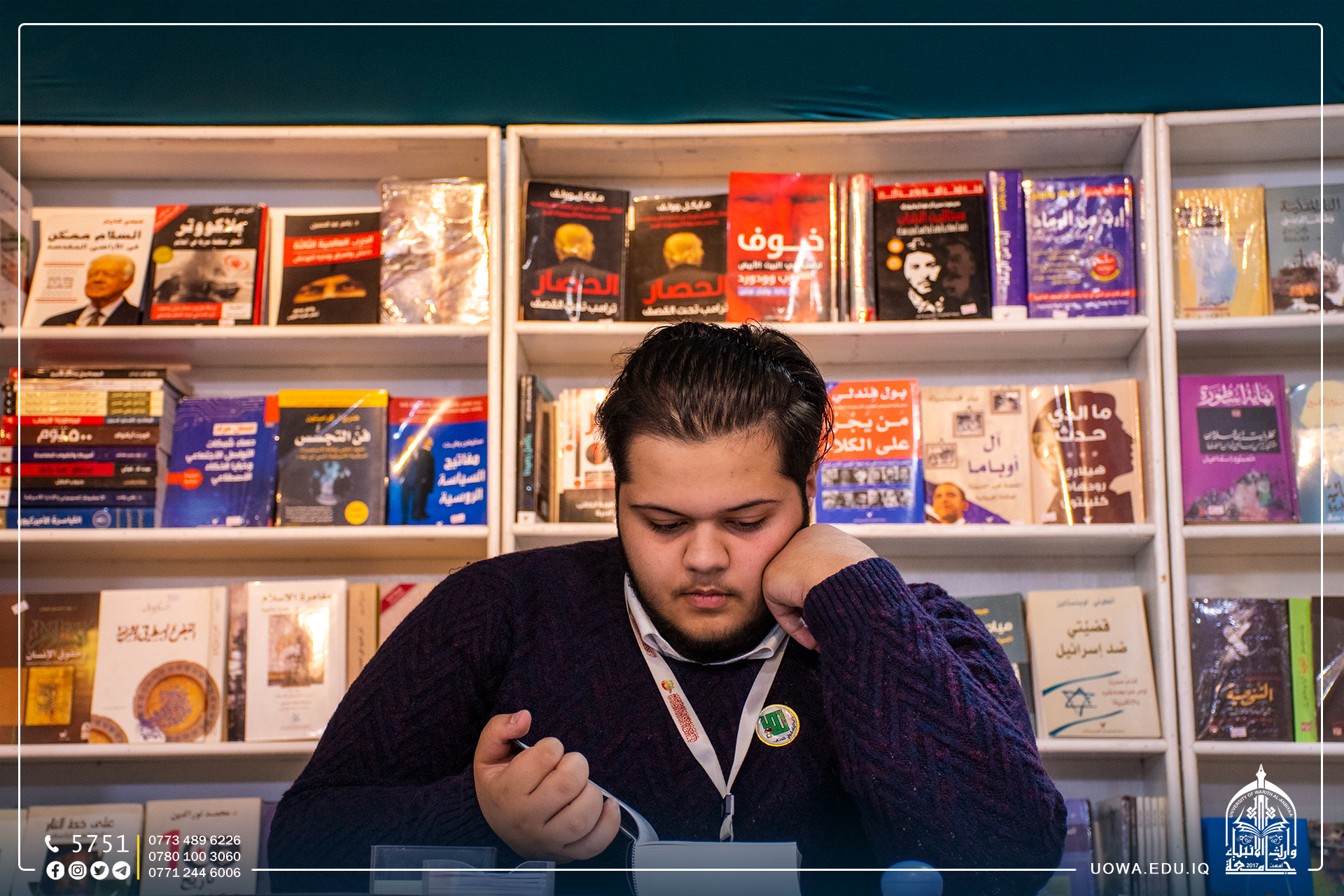 In pictures... A visit by students from the College of Law, Islamic Sciences, and Administration and Economics at the University of Warith Al-Anbiyaa to the "Ain Al-Hayat" festival, passing through the pavilion dedicated to the University of Warith Al-Anbiyaa. It is worth mentioning that the activities of the "Ain Al-Hayat" festival kicked off in commemoration of the birth of the awaited Imam Mahdi (may Allah hasten his reappearance) at the Baghdad International Fairgrounds, with the participation of the holy shrines in Iraq.